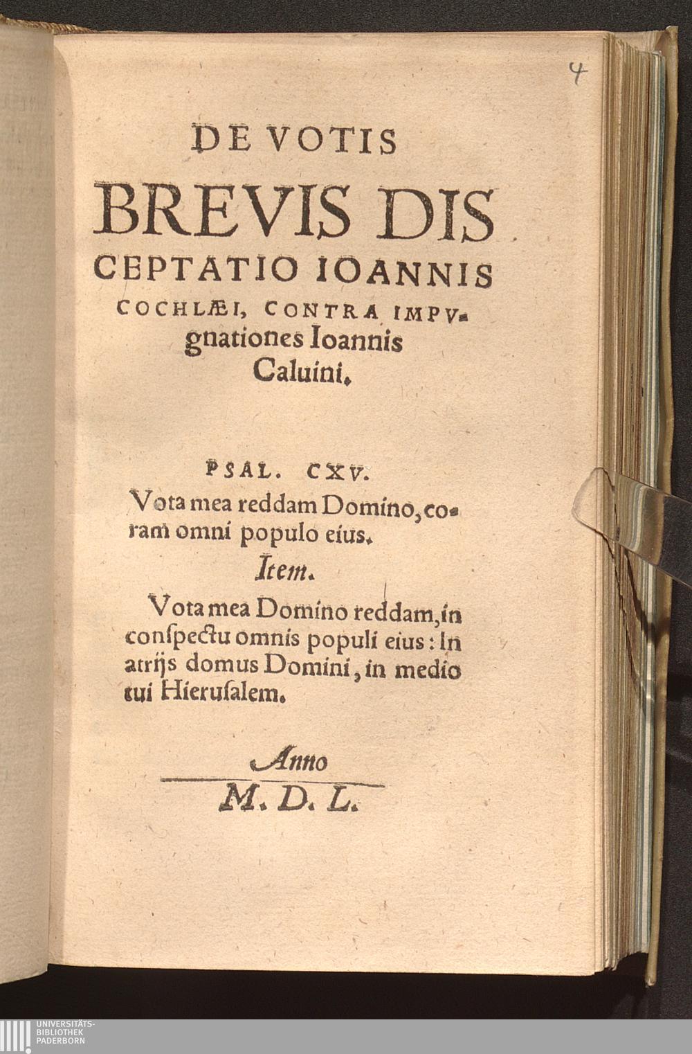 De Votis Brevis Disceptatio Ioannis Cochlæi, Contra Impvgnationes Ioannis Caluin[...]