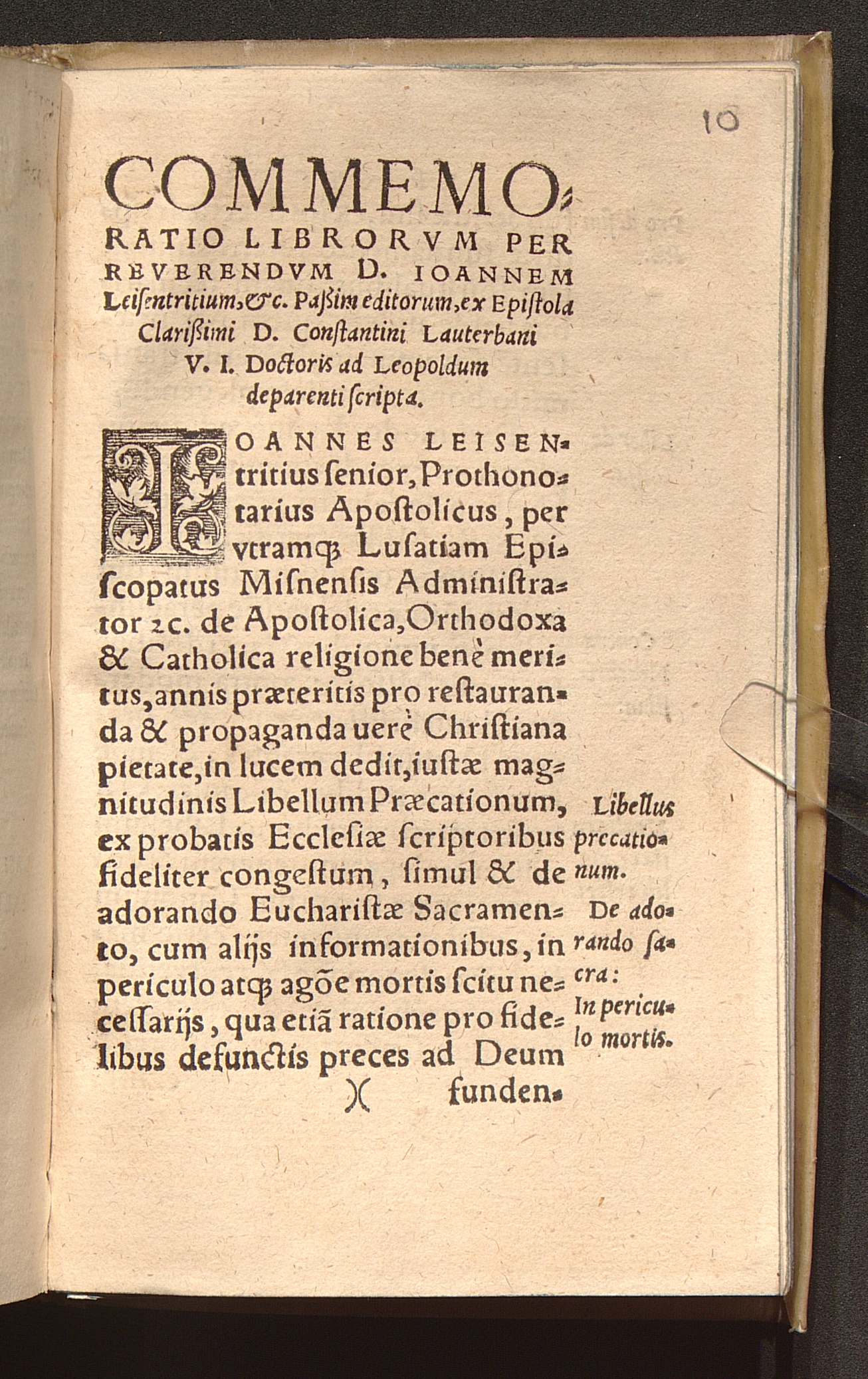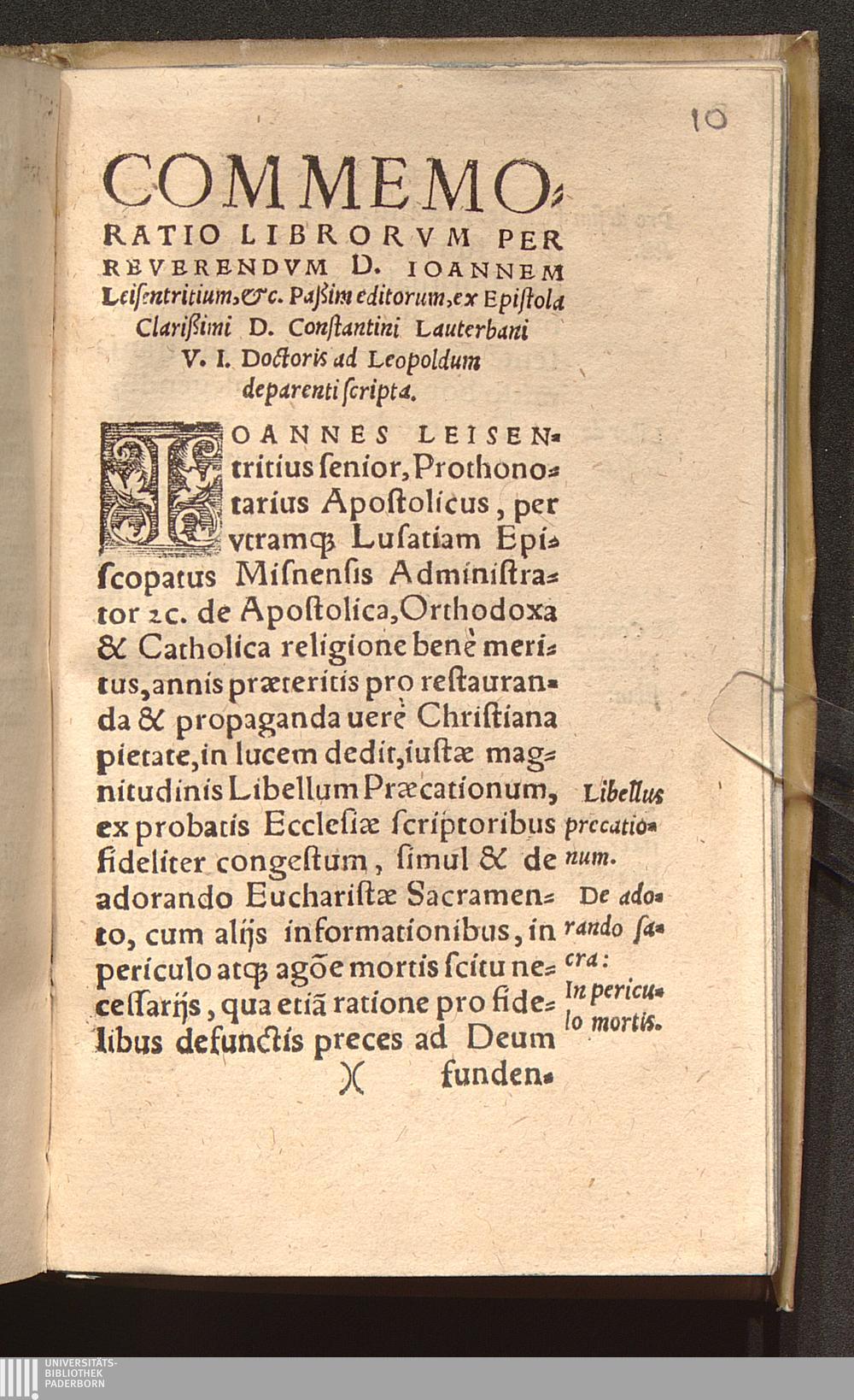 Libellvs De Salvtari Preparatione Ad Sacrosanctae Missae Celebrationem, ex Orthodoxæ & Apostolicæ Ecclesiæ Doctorum scriptis, diligenter congestus, recognitus & Avctvs : Huic annexa est Appendix de Horis Canonicis cum alijs quibusdam / Per Ioannem Leisentrittvm, Ecclesiae Bvdis: Decanvm &c.