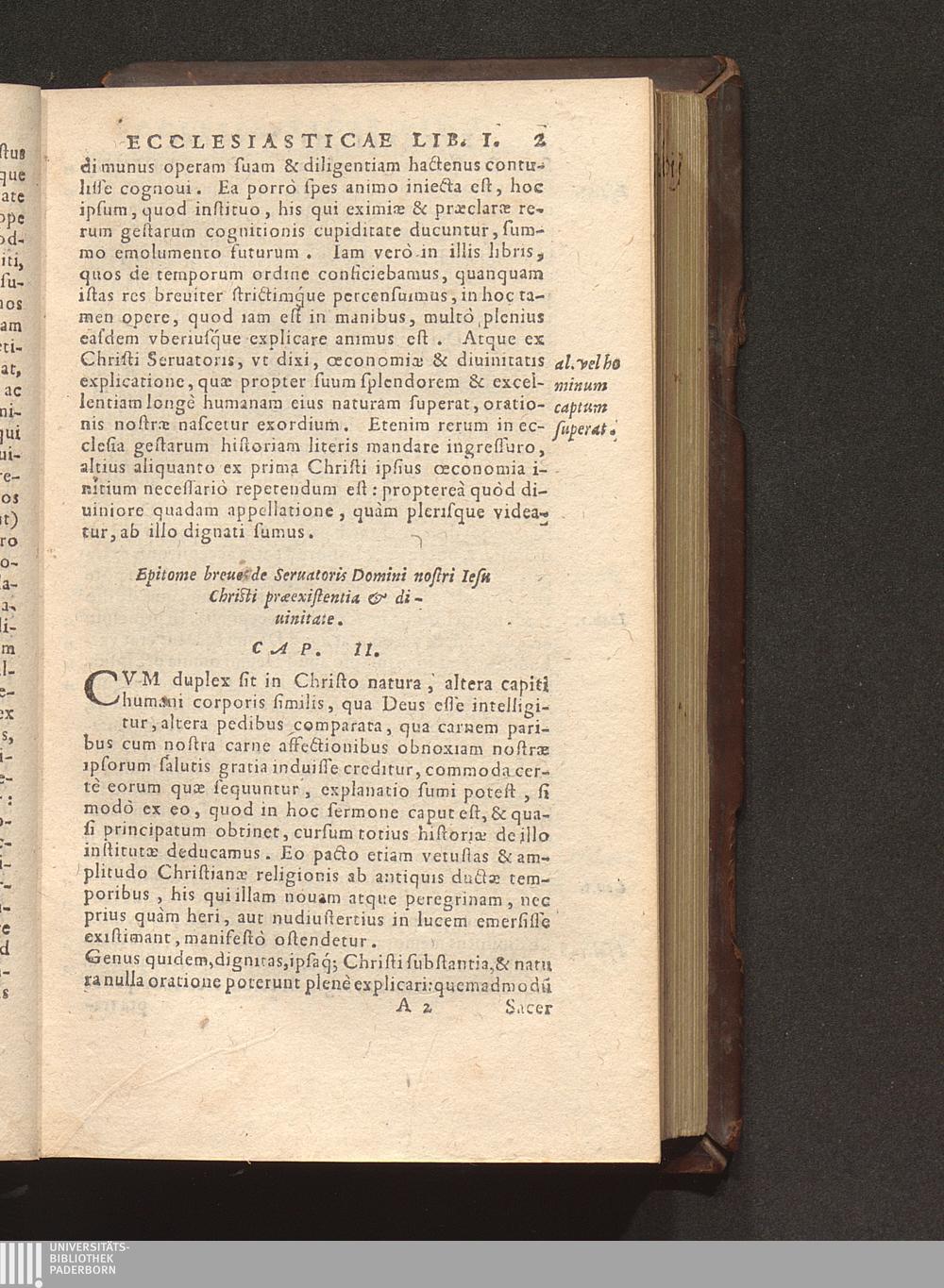 Prima (1569) HISTORIAE EC||CLESIASTICAE PARS || PRIMA, QVA CONTI-||NENTVR || Eusebij cognomento Pamphili Cæsareæ Palæ-||stinæ Episcopi lib. 10.|| Eiusdem de vita Constantini magni lib. 4.|| Oratio Constantini magni ad sanctoru[m] cœtu[m].|| Oratio eiusdem Eusebij in laudem Constanti-||ni magni ad trigesimum illius imperij an-||num, ... ||