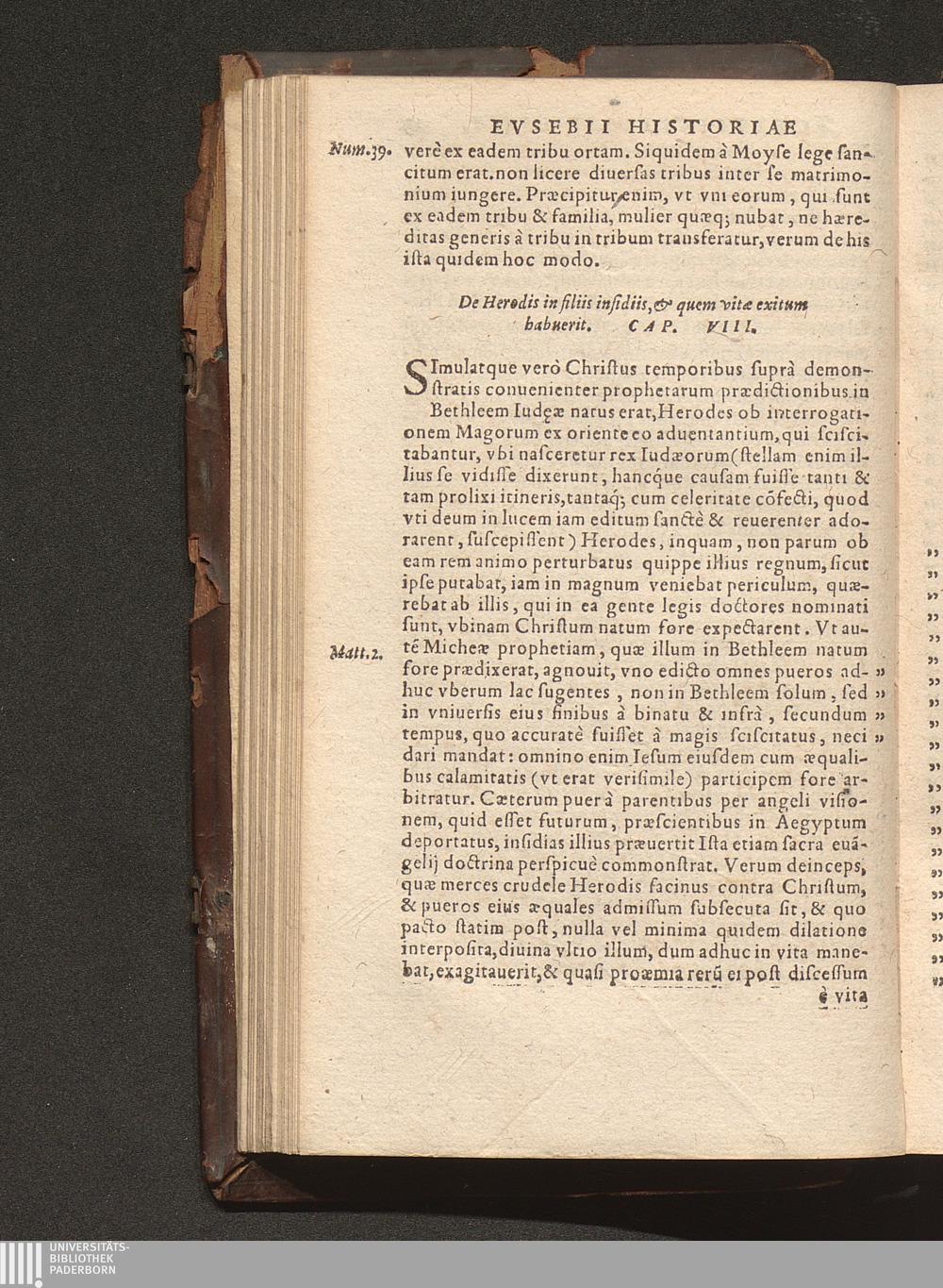 Prima (1569) HISTORIAE EC||CLESIASTICAE PARS || PRIMA, QVA CONTI-||NENTVR || Eusebij cognomento Pamphili Cæsareæ Palæ-||stinæ Episcopi lib. 10.|| Eiusdem de vita Constantini magni lib. 4.|| Oratio Constantini magni ad sanctoru[m] cœtu[m].|| Oratio eiusdem Eusebij in laudem Constanti-||ni magni ad trigesimum illius imperij an-||num, ... ||