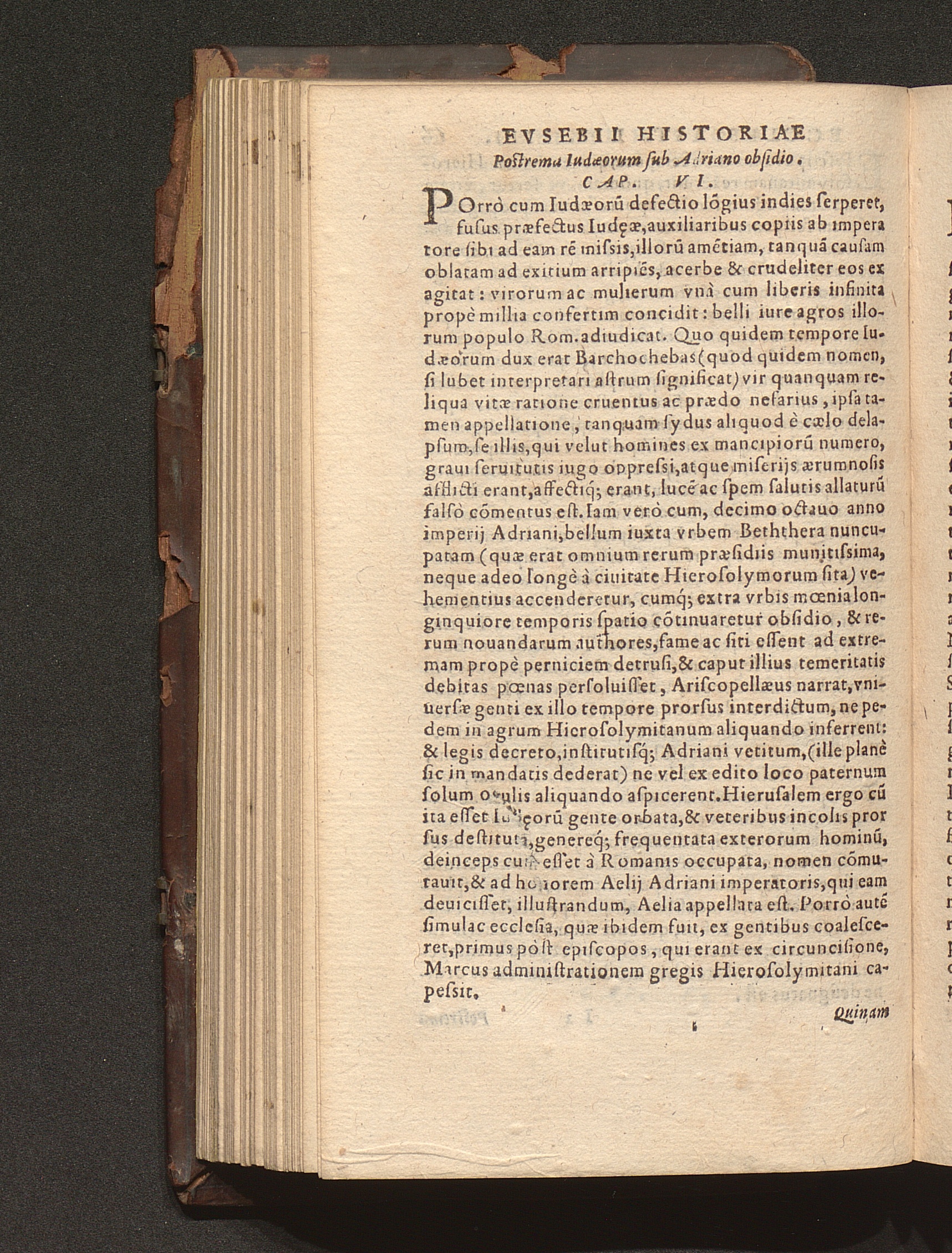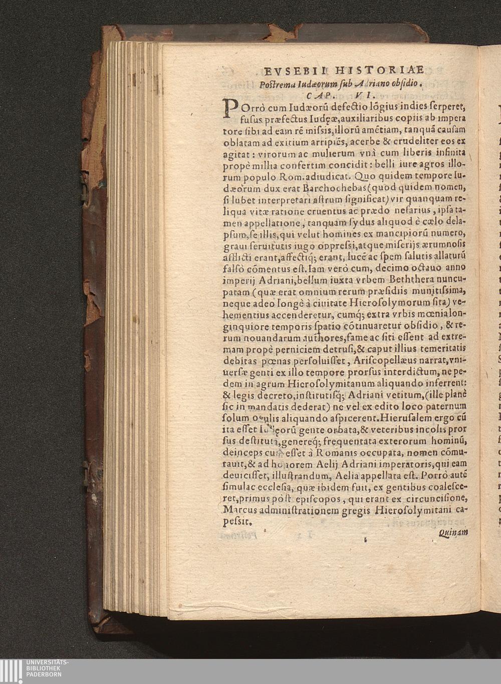 Prima (1569) HISTORIAE EC||CLESIASTICAE PARS || PRIMA, QVA CONTI-||NENTVR || Eusebij cognomento Pamphili Cæsareæ Palæ-||stinæ Episcopi lib. 10.|| Eiusdem de vita Constantini magni lib. 4.|| Oratio Constantini magni ad sanctoru[m] cœtu[m].|| Oratio eiusdem Eusebij in laudem Constanti-||ni magni ad trigesimum illius imperij an-||num, ... ||