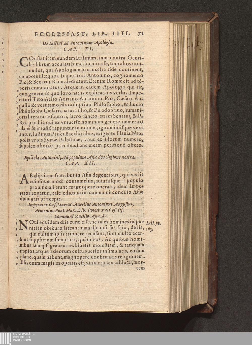 Prima (1569) HISTORIAE EC||CLESIASTICAE PARS || PRIMA, QVA CONTI-||NENTVR || Eusebij cognomento Pamphili Cæsareæ Palæ-||stinæ Episcopi lib. 10.|| Eiusdem de vita Constantini magni lib. 4.|| Oratio Constantini magni ad sanctoru[m] cœtu[m].|| Oratio eiusdem Eusebij in laudem Constanti-||ni magni ad trigesimum illius imperij an-||num, ... ||