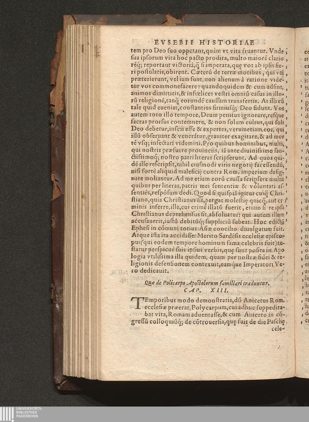 Prima (1569) HISTORIAE EC||CLESIASTICAE PARS || PRIMA, QVA CONTI-||NENTVR || Eusebij cognomento Pamphili Cæsareæ Palæ-||stinæ Episcopi lib. 10.|| Eiusdem de vita Constantini magni lib. 4.|| Oratio Constantini magni ad sanctoru[m] cœtu[m].|| Oratio eiusdem Eusebij in laudem Constanti-||ni magni ad trigesimum illius imperij an-||num, ... ||