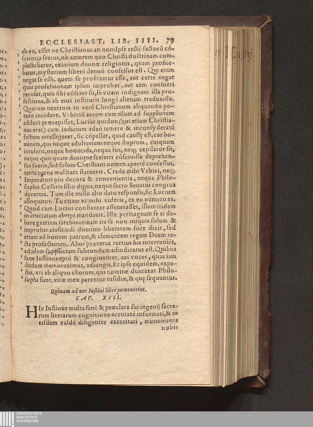 Prima (1569) HISTORIAE EC||CLESIASTICAE PARS || PRIMA, QVA CONTI-||NENTVR || Eusebij cognomento Pamphili Cæsareæ Palæ-||stinæ Episcopi lib. 10.|| Eiusdem de vita Constantini magni lib. 4.|| Oratio Constantini magni ad sanctoru[m] cœtu[m].|| Oratio eiusdem Eusebij in laudem Constanti-||ni magni ad trigesimum illius imperij an-||num, ... ||