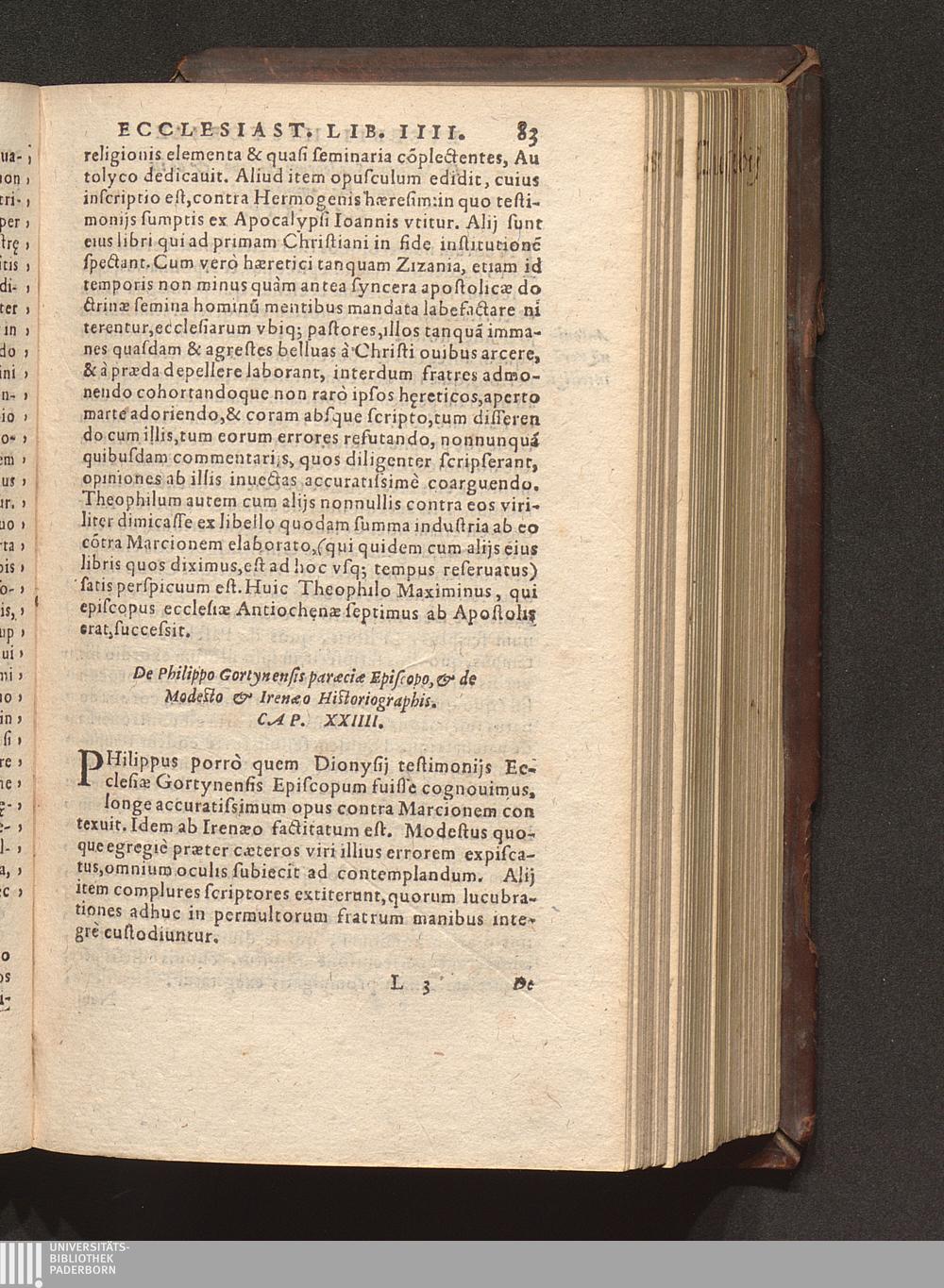 Prima (1569) HISTORIAE EC||CLESIASTICAE PARS || PRIMA, QVA CONTI-||NENTVR || Eusebij cognomento Pamphili Cæsareæ Palæ-||stinæ Episcopi lib. 10.|| Eiusdem de vita Constantini magni lib. 4.|| Oratio Constantini magni ad sanctoru[m] cœtu[m].|| Oratio eiusdem Eusebij in laudem Constanti-||ni magni ad trigesimum illius imperij an-||num, ... ||