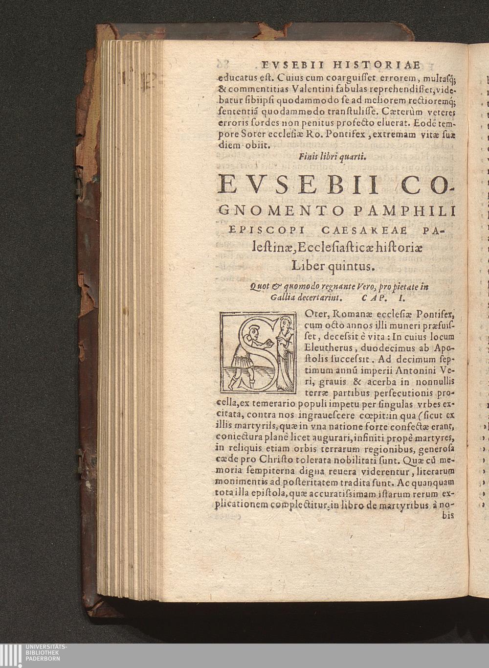 Prima (1569) HISTORIAE EC||CLESIASTICAE PARS || PRIMA, QVA CONTI-||NENTVR || Eusebij cognomento Pamphili Cæsareæ Palæ-||stinæ Episcopi lib. 10.|| Eiusdem de vita Constantini magni lib. 4.|| Oratio Constantini magni ad sanctoru[m] cœtu[m].|| Oratio eiusdem Eusebij in laudem Constanti-||ni magni ad trigesimum illius imperij an-||num, ... ||