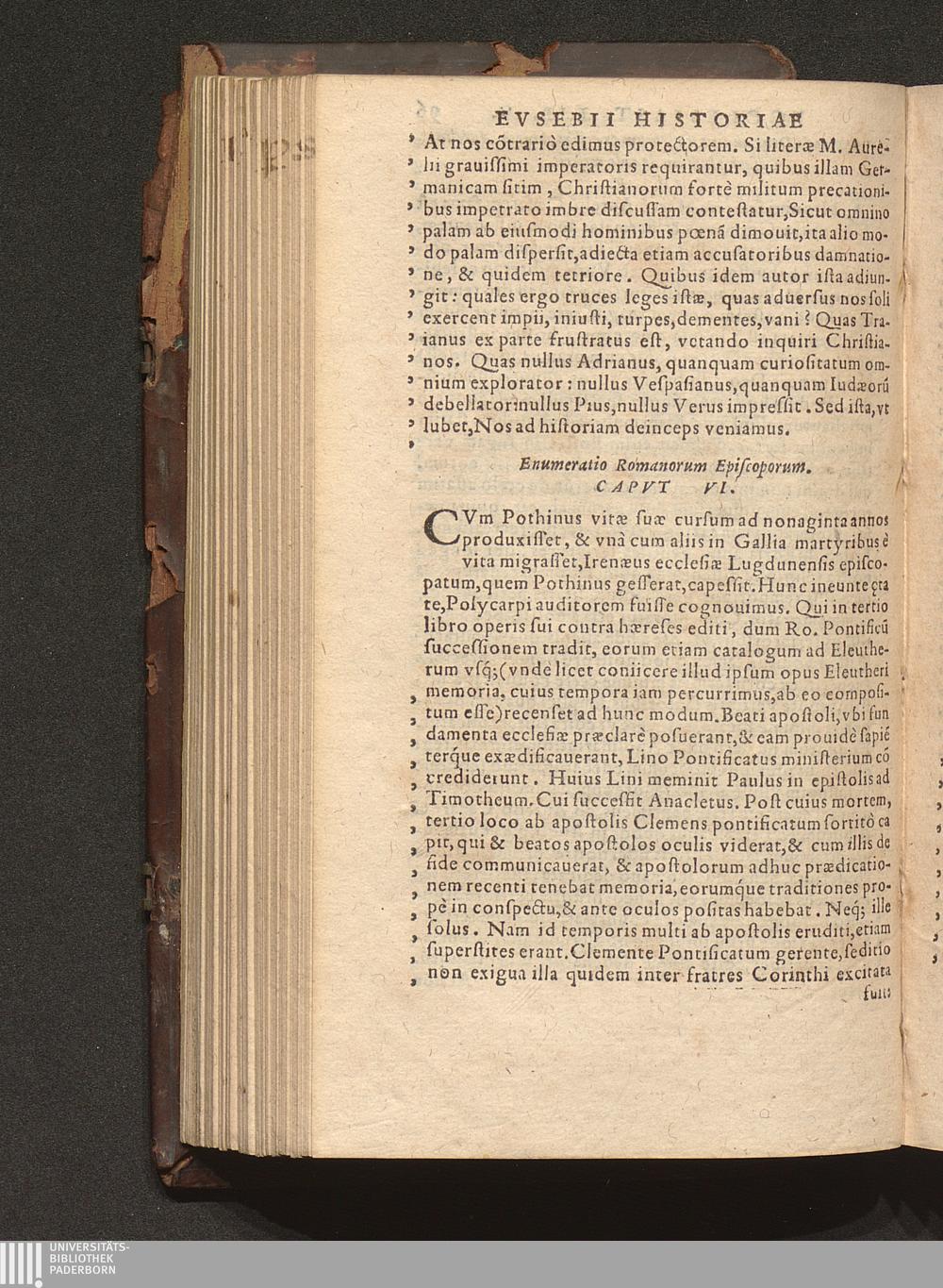 Prima (1569) HISTORIAE EC||CLESIASTICAE PARS || PRIMA, QVA CONTI-||NENTVR || Eusebij cognomento Pamphili Cæsareæ Palæ-||stinæ Episcopi lib. 10.|| Eiusdem de vita Constantini magni lib. 4.|| Oratio Constantini magni ad sanctoru[m] cœtu[m].|| Oratio eiusdem Eusebij in laudem Constanti-||ni magni ad trigesimum illius imperij an-||num, ... ||