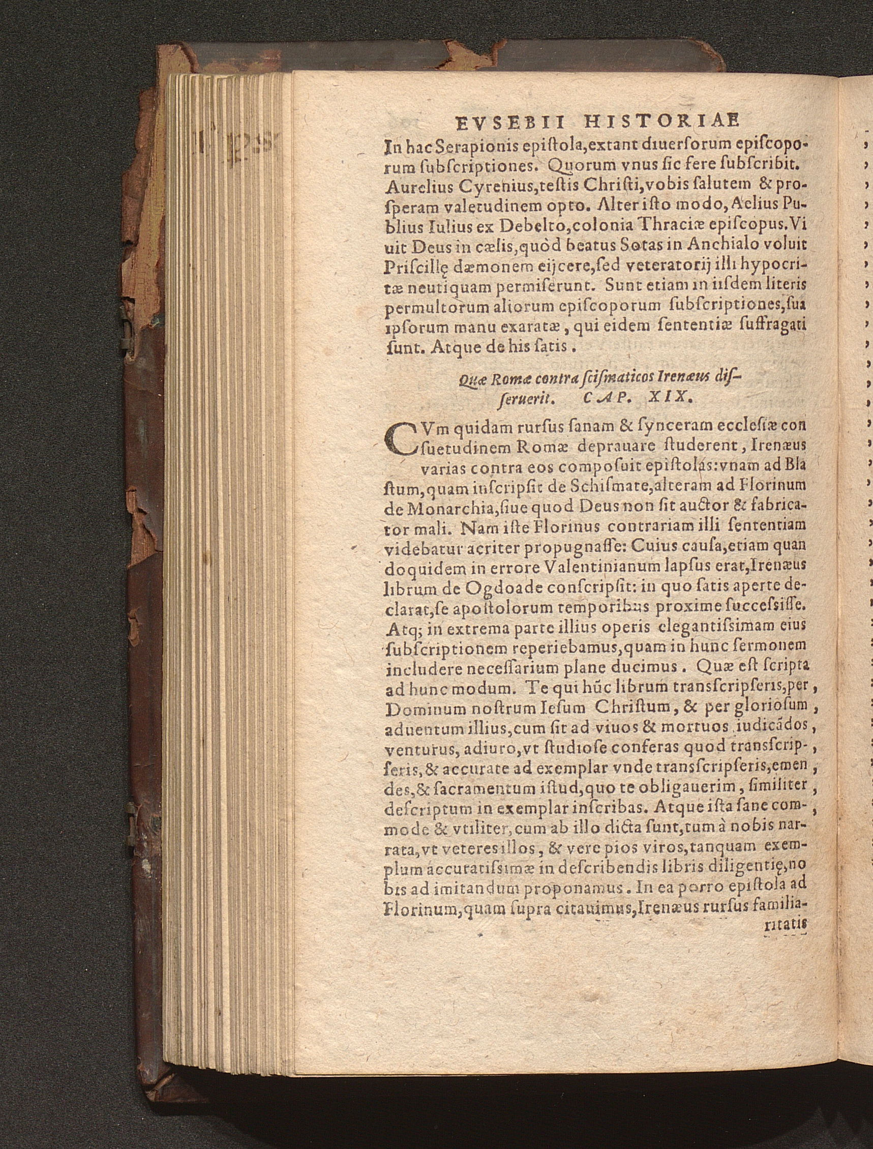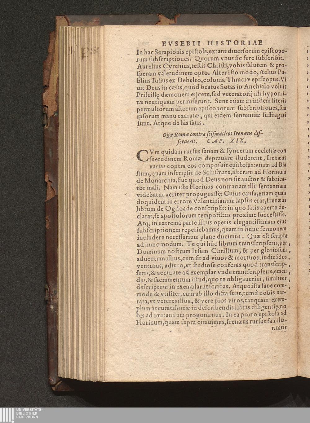 Prima (1569) HISTORIAE EC||CLESIASTICAE PARS || PRIMA, QVA CONTI-||NENTVR || Eusebij cognomento Pamphili Cæsareæ Palæ-||stinæ Episcopi lib. 10.|| Eiusdem de vita Constantini magni lib. 4.|| Oratio Constantini magni ad sanctoru[m] cœtu[m].|| Oratio eiusdem Eusebij in laudem Constanti-||ni magni ad trigesimum illius imperij an-||num, ... ||