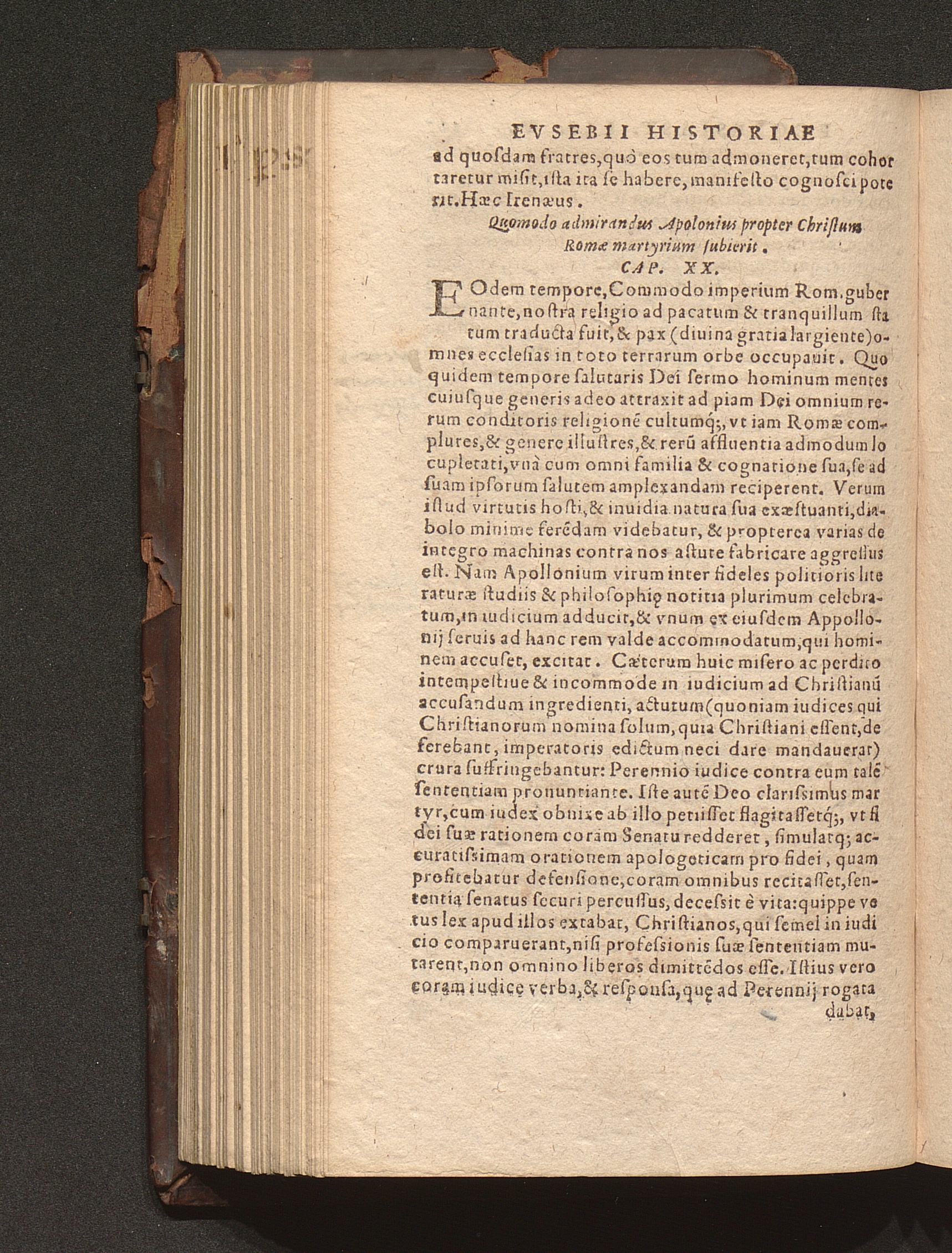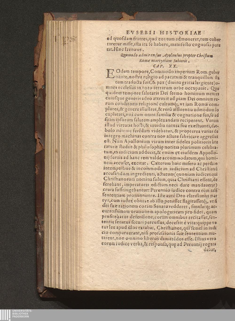 Prima (1569) HISTORIAE EC||CLESIASTICAE PARS || PRIMA, QVA CONTI-||NENTVR || Eusebij cognomento Pamphili Cæsareæ Palæ-||stinæ Episcopi lib. 10.|| Eiusdem de vita Constantini magni lib. 4.|| Oratio Constantini magni ad sanctoru[m] cœtu[m].|| Oratio eiusdem Eusebij in laudem Constanti-||ni magni ad trigesimum illius imperij an-||num, ... ||