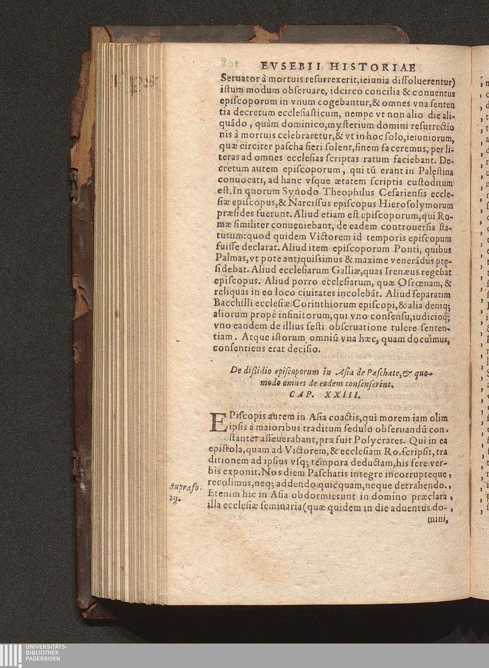 Prima (1569) HISTORIAE EC||CLESIASTICAE PARS || PRIMA, QVA CONTI-||NENTVR || Eusebij cognomento Pamphili Cæsareæ Palæ-||stinæ Episcopi lib. 10.|| Eiusdem de vita Constantini magni lib. 4.|| Oratio Constantini magni ad sanctoru[m] cœtu[m].|| Oratio eiusdem Eusebij in laudem Constanti-||ni magni ad trigesimum illius imperij an-||num, ... ||