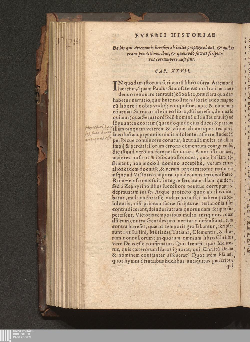 Prima (1569) HISTORIAE EC||CLESIASTICAE PARS || PRIMA, QVA CONTI-||NENTVR || Eusebij cognomento Pamphili Cæsareæ Palæ-||stinæ Episcopi lib. 10.|| Eiusdem de vita Constantini magni lib. 4.|| Oratio Constantini magni ad sanctoru[m] cœtu[m].|| Oratio eiusdem Eusebij in laudem Constanti-||ni magni ad trigesimum illius imperij an-||num, ... ||