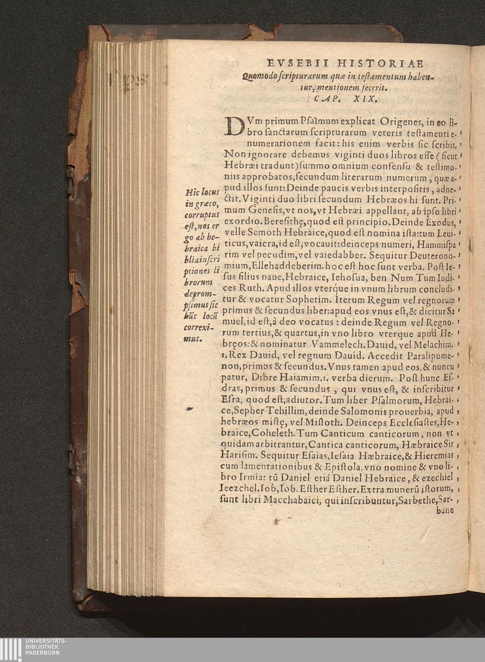 Prima (1569) HISTORIAE EC||CLESIASTICAE PARS || PRIMA, QVA CONTI-||NENTVR || Eusebij cognomento Pamphili Cæsareæ Palæ-||stinæ Episcopi lib. 10.|| Eiusdem de vita Constantini magni lib. 4.|| Oratio Constantini magni ad sanctoru[m] cœtu[m].|| Oratio eiusdem Eusebij in laudem Constanti-||ni magni ad trigesimum illius imperij an-||num, ... ||