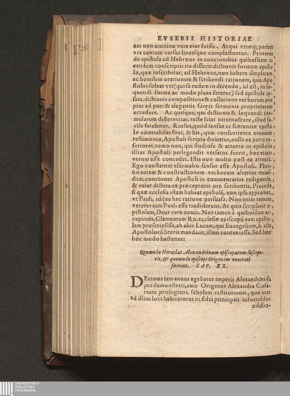 Prima (1569) HISTORIAE EC||CLESIASTICAE PARS || PRIMA, QVA CONTI-||NENTVR || Eusebij cognomento Pamphili Cæsareæ Palæ-||stinæ Episcopi lib. 10.|| Eiusdem de vita Constantini magni lib. 4.|| Oratio Constantini magni ad sanctoru[m] cœtu[m].|| Oratio eiusdem Eusebij in laudem Constanti-||ni magni ad trigesimum illius imperij an-||num, ... ||