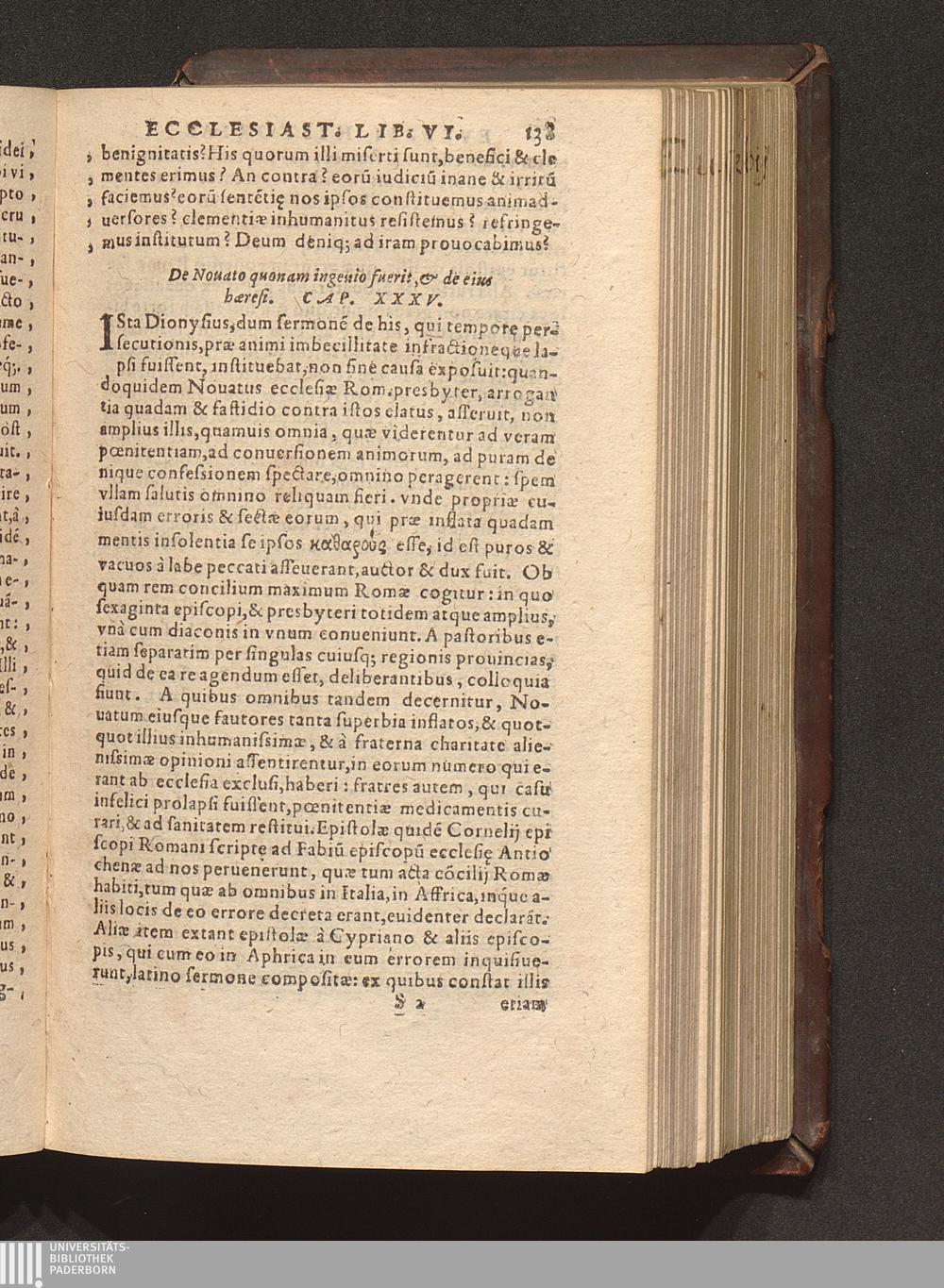 Prima (1569) HISTORIAE EC||CLESIASTICAE PARS || PRIMA, QVA CONTI-||NENTVR || Eusebij cognomento Pamphili Cæsareæ Palæ-||stinæ Episcopi lib. 10.|| Eiusdem de vita Constantini magni lib. 4.|| Oratio Constantini magni ad sanctoru[m] cœtu[m].|| Oratio eiusdem Eusebij in laudem Constanti-||ni magni ad trigesimum illius imperij an-||num, ... ||