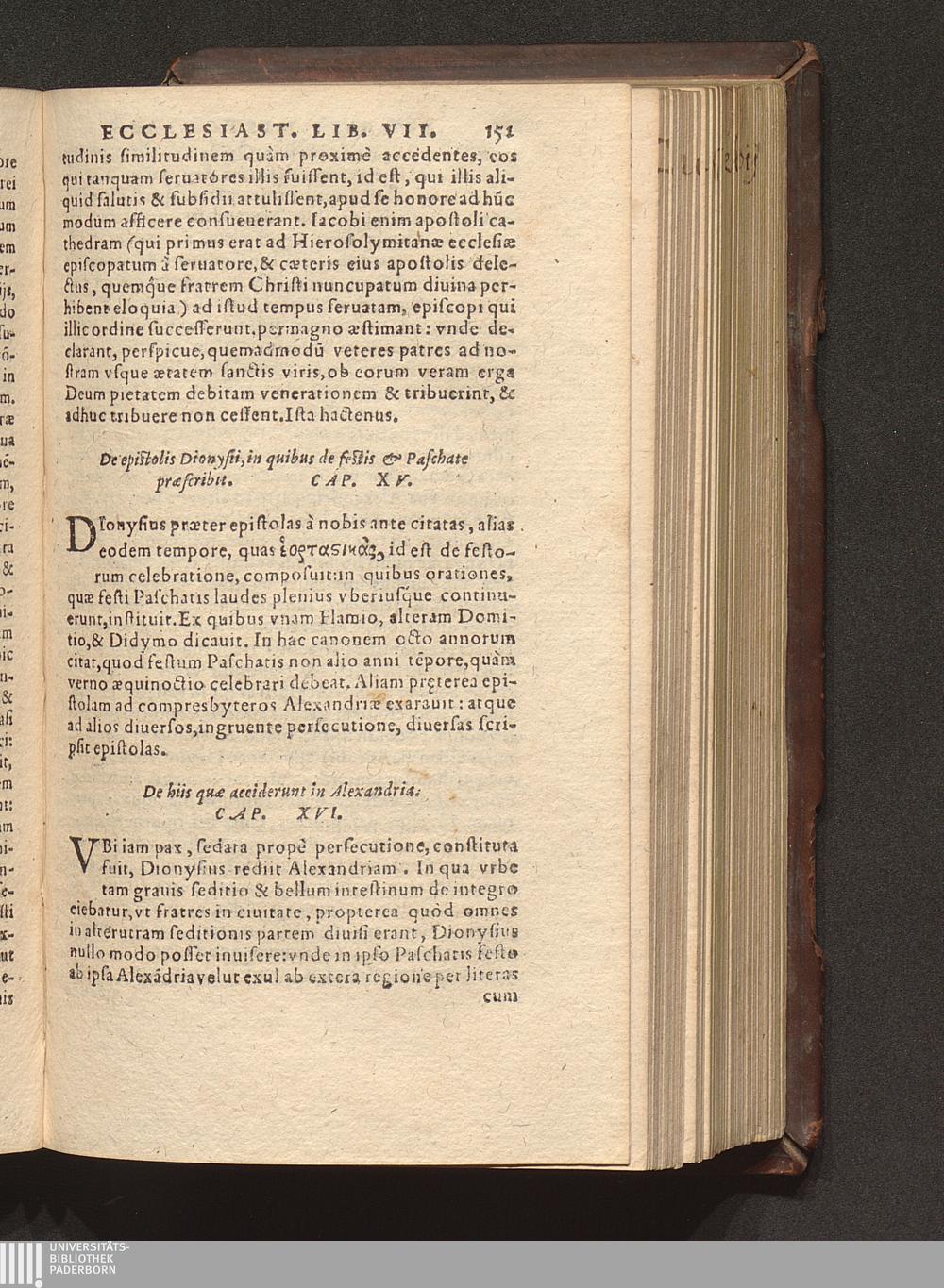 Prima (1569) HISTORIAE EC||CLESIASTICAE PARS || PRIMA, QVA CONTI-||NENTVR || Eusebij cognomento Pamphili Cæsareæ Palæ-||stinæ Episcopi lib. 10.|| Eiusdem de vita Constantini magni lib. 4.|| Oratio Constantini magni ad sanctoru[m] cœtu[m].|| Oratio eiusdem Eusebij in laudem Constanti-||ni magni ad trigesimum illius imperij an-||num, ... ||
