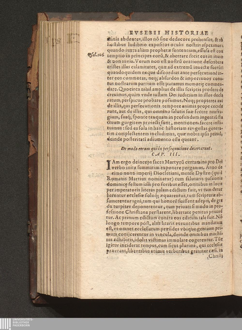 Prima (1569) HISTORIAE EC||CLESIASTICAE PARS || PRIMA, QVA CONTI-||NENTVR || Eusebij cognomento Pamphili Cæsareæ Palæ-||stinæ Episcopi lib. 10.|| Eiusdem de vita Constantini magni lib. 4.|| Oratio Constantini magni ad sanctoru[m] cœtu[m].|| Oratio eiusdem Eusebij in laudem Constanti-||ni magni ad trigesimum illius imperij an-||num, ... ||