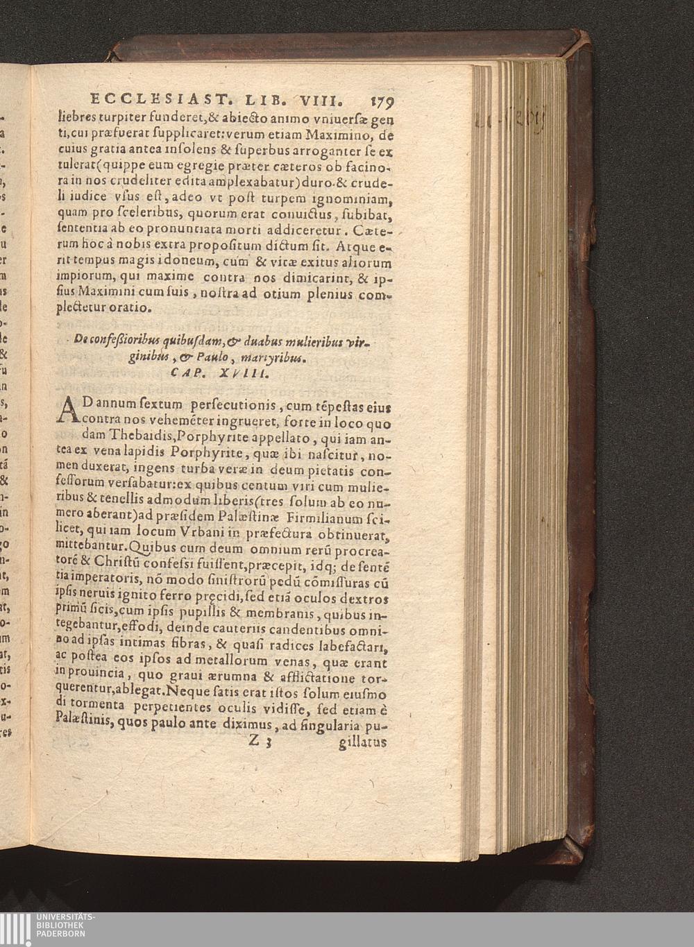 Prima (1569) HISTORIAE EC||CLESIASTICAE PARS || PRIMA, QVA CONTI-||NENTVR || Eusebij cognomento Pamphili Cæsareæ Palæ-||stinæ Episcopi lib. 10.|| Eiusdem de vita Constantini magni lib. 4.|| Oratio Constantini magni ad sanctoru[m] cœtu[m].|| Oratio eiusdem Eusebij in laudem Constanti-||ni magni ad trigesimum illius imperij an-||num, ... ||