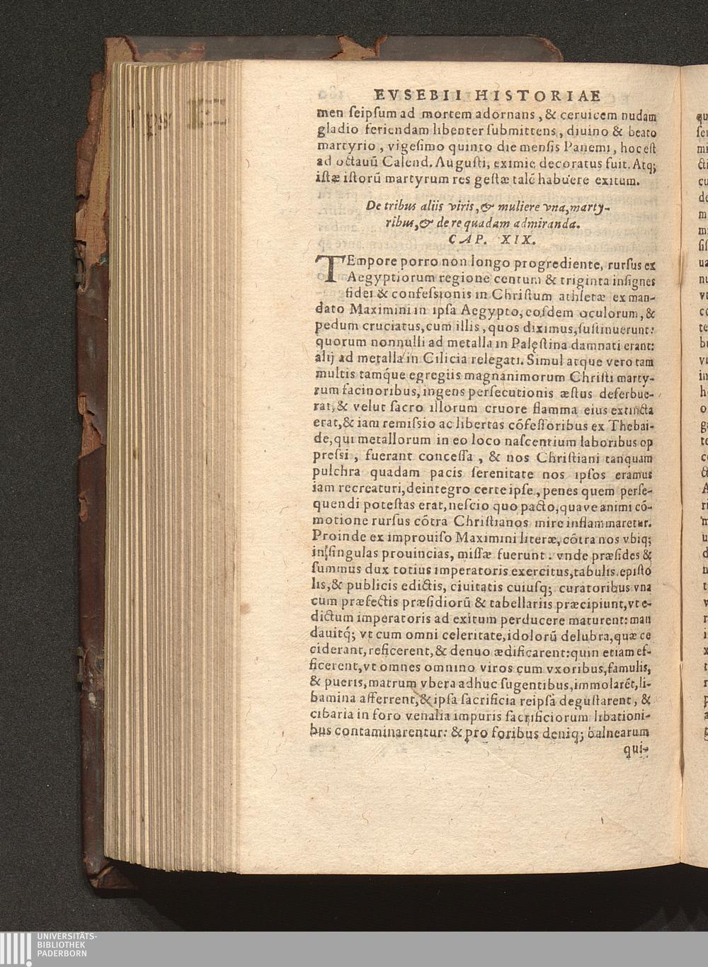 Prima (1569) HISTORIAE EC||CLESIASTICAE PARS || PRIMA, QVA CONTI-||NENTVR || Eusebij cognomento Pamphili Cæsareæ Palæ-||stinæ Episcopi lib. 10.|| Eiusdem de vita Constantini magni lib. 4.|| Oratio Constantini magni ad sanctoru[m] cœtu[m].|| Oratio eiusdem Eusebij in laudem Constanti-||ni magni ad trigesimum illius imperij an-||num, ... ||