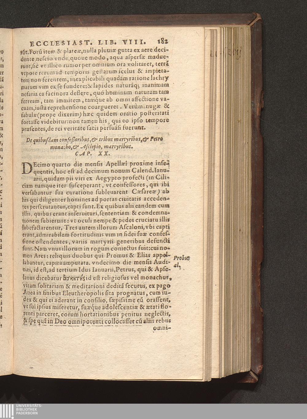 Prima (1569) HISTORIAE EC||CLESIASTICAE PARS || PRIMA, QVA CONTI-||NENTVR || Eusebij cognomento Pamphili Cæsareæ Palæ-||stinæ Episcopi lib. 10.|| Eiusdem de vita Constantini magni lib. 4.|| Oratio Constantini magni ad sanctoru[m] cœtu[m].|| Oratio eiusdem Eusebij in laudem Constanti-||ni magni ad trigesimum illius imperij an-||num, ... ||