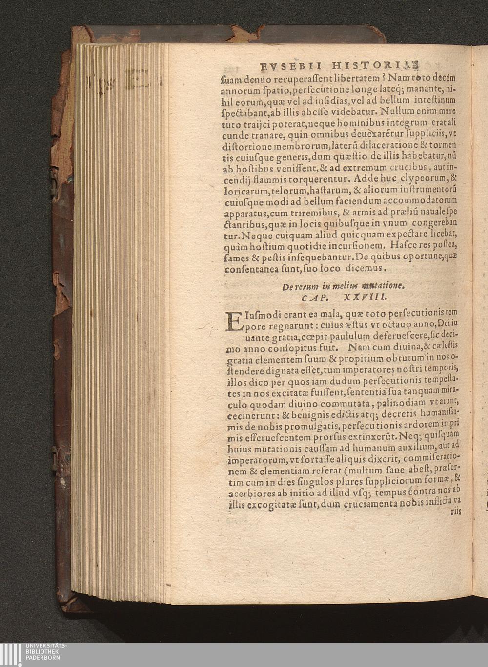 Prima (1569) HISTORIAE EC||CLESIASTICAE PARS || PRIMA, QVA CONTI-||NENTVR || Eusebij cognomento Pamphili Cæsareæ Palæ-||stinæ Episcopi lib. 10.|| Eiusdem de vita Constantini magni lib. 4.|| Oratio Constantini magni ad sanctoru[m] cœtu[m].|| Oratio eiusdem Eusebij in laudem Constanti-||ni magni ad trigesimum illius imperij an-||num, ... ||