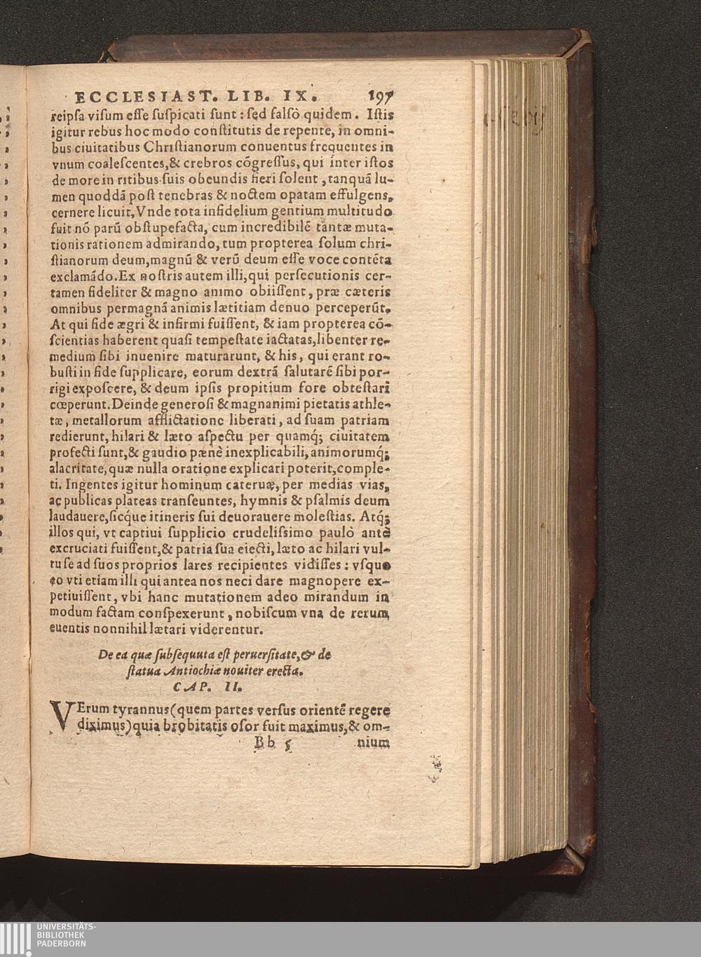Prima (1569) HISTORIAE EC||CLESIASTICAE PARS || PRIMA, QVA CONTI-||NENTVR || Eusebij cognomento Pamphili Cæsareæ Palæ-||stinæ Episcopi lib. 10.|| Eiusdem de vita Constantini magni lib. 4.|| Oratio Constantini magni ad sanctoru[m] cœtu[m].|| Oratio eiusdem Eusebij in laudem Constanti-||ni magni ad trigesimum illius imperij an-||num, ... ||