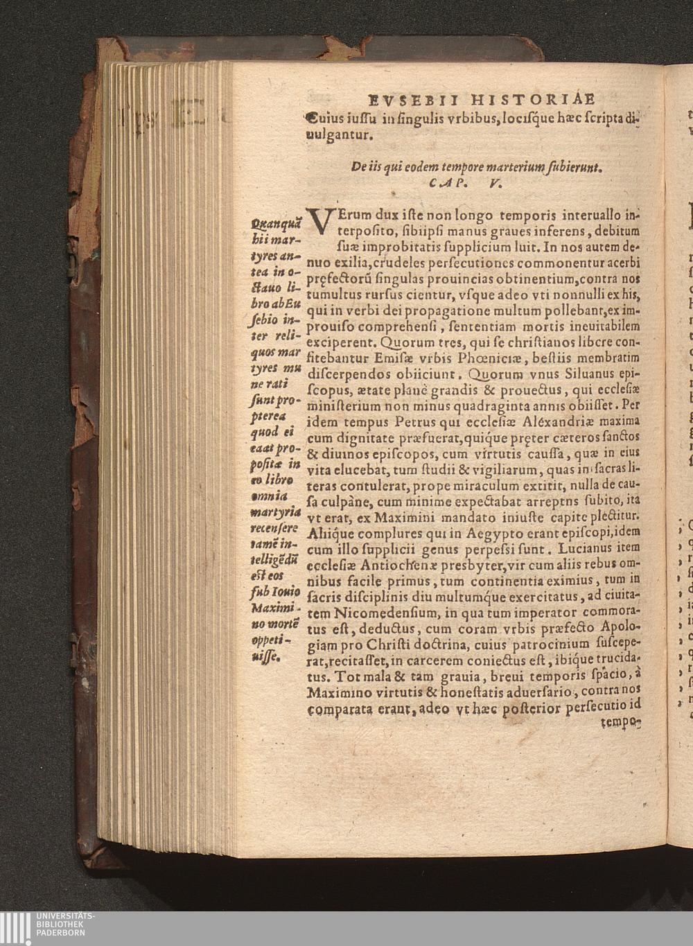 Prima (1569) HISTORIAE EC||CLESIASTICAE PARS || PRIMA, QVA CONTI-||NENTVR || Eusebij cognomento Pamphili Cæsareæ Palæ-||stinæ Episcopi lib. 10.|| Eiusdem de vita Constantini magni lib. 4.|| Oratio Constantini magni ad sanctoru[m] cœtu[m].|| Oratio eiusdem Eusebij in laudem Constanti-||ni magni ad trigesimum illius imperij an-||num, ... ||
