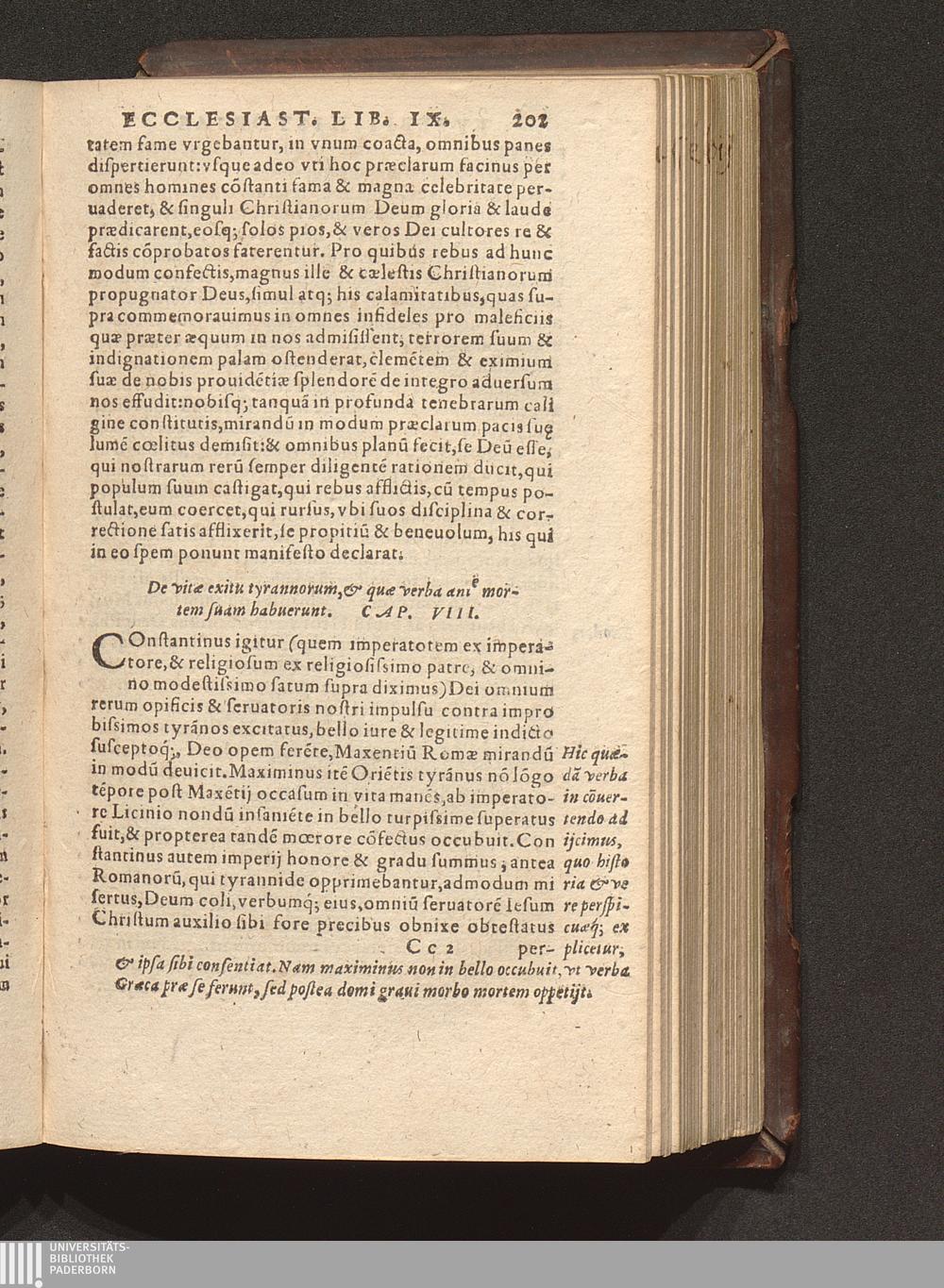 Prima (1569) HISTORIAE EC||CLESIASTICAE PARS || PRIMA, QVA CONTI-||NENTVR || Eusebij cognomento Pamphili Cæsareæ Palæ-||stinæ Episcopi lib. 10.|| Eiusdem de vita Constantini magni lib. 4.|| Oratio Constantini magni ad sanctoru[m] cœtu[m].|| Oratio eiusdem Eusebij in laudem Constanti-||ni magni ad trigesimum illius imperij an-||num, ... ||