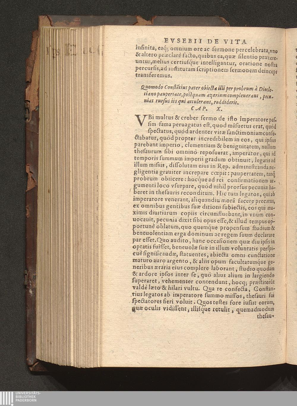 Prima (1569) HISTORIAE EC||CLESIASTICAE PARS || PRIMA, QVA CONTI-||NENTVR || Eusebij cognomento Pamphili Cæsareæ Palæ-||stinæ Episcopi lib. 10.|| Eiusdem de vita Constantini magni lib. 4.|| Oratio Constantini magni ad sanctoru[m] cœtu[m].|| Oratio eiusdem Eusebij in laudem Constanti-||ni magni ad trigesimum illius imperij an-||num, ... ||