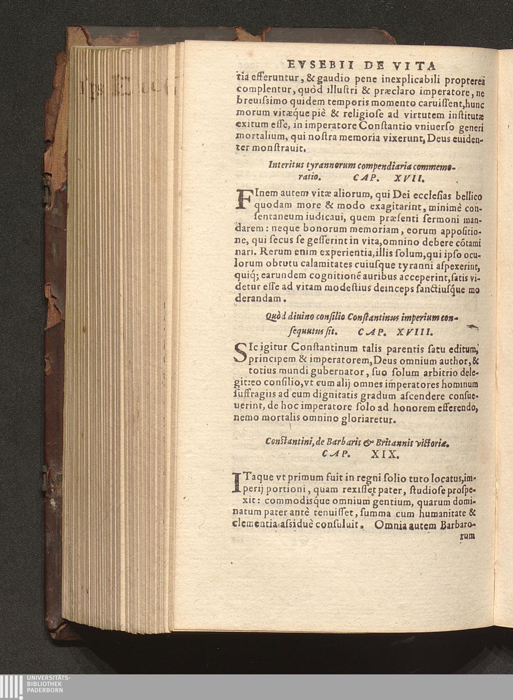 Prima (1569) HISTORIAE EC||CLESIASTICAE PARS || PRIMA, QVA CONTI-||NENTVR || Eusebij cognomento Pamphili Cæsareæ Palæ-||stinæ Episcopi lib. 10.|| Eiusdem de vita Constantini magni lib. 4.|| Oratio Constantini magni ad sanctoru[m] cœtu[m].|| Oratio eiusdem Eusebij in laudem Constanti-||ni magni ad trigesimum illius imperij an-||num, ... ||