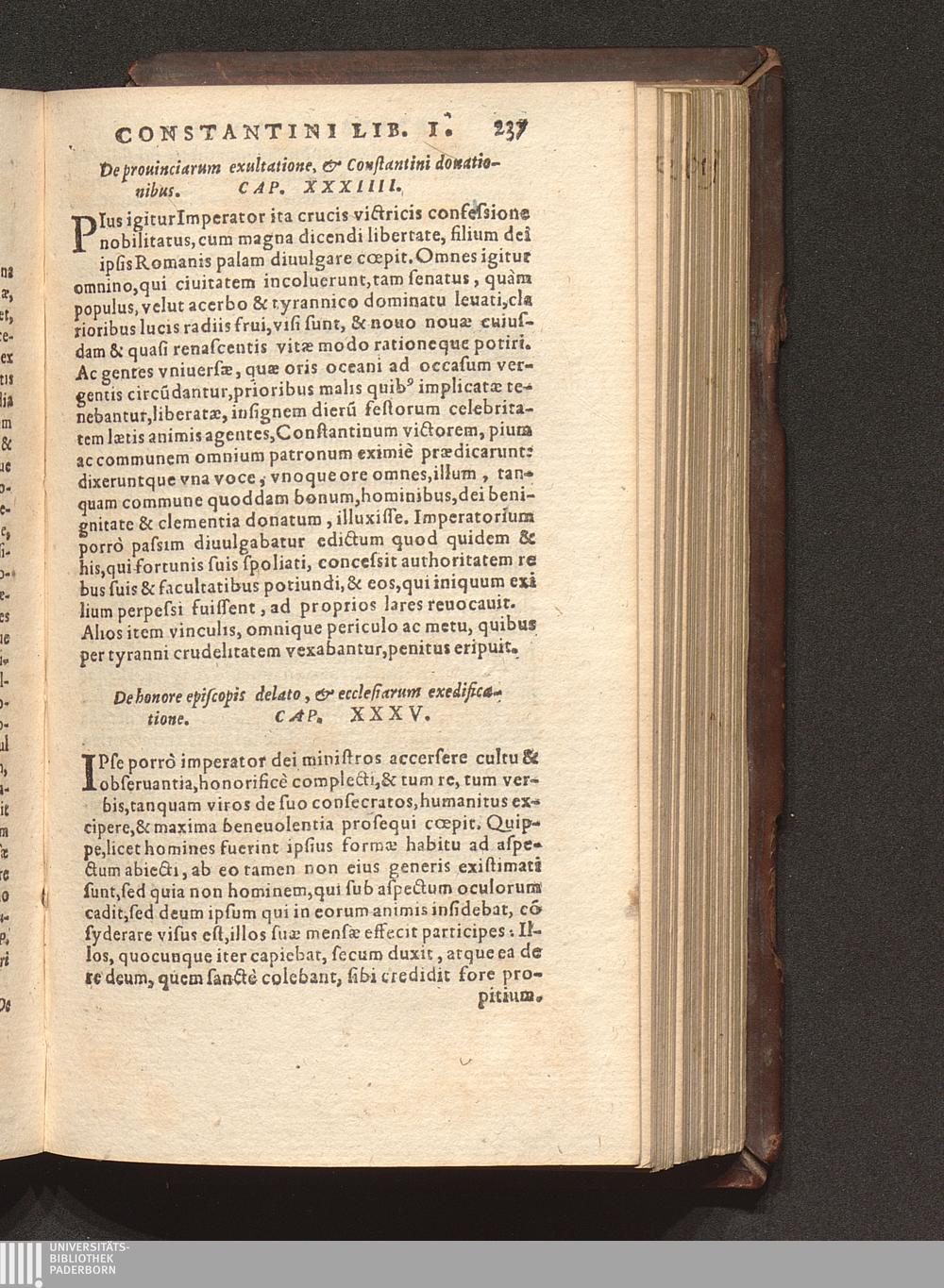 Prima (1569) HISTORIAE EC||CLESIASTICAE PARS || PRIMA, QVA CONTI-||NENTVR || Eusebij cognomento Pamphili Cæsareæ Palæ-||stinæ Episcopi lib. 10.|| Eiusdem de vita Constantini magni lib. 4.|| Oratio Constantini magni ad sanctoru[m] cœtu[m].|| Oratio eiusdem Eusebij in laudem Constanti-||ni magni ad trigesimum illius imperij an-||num, ... ||