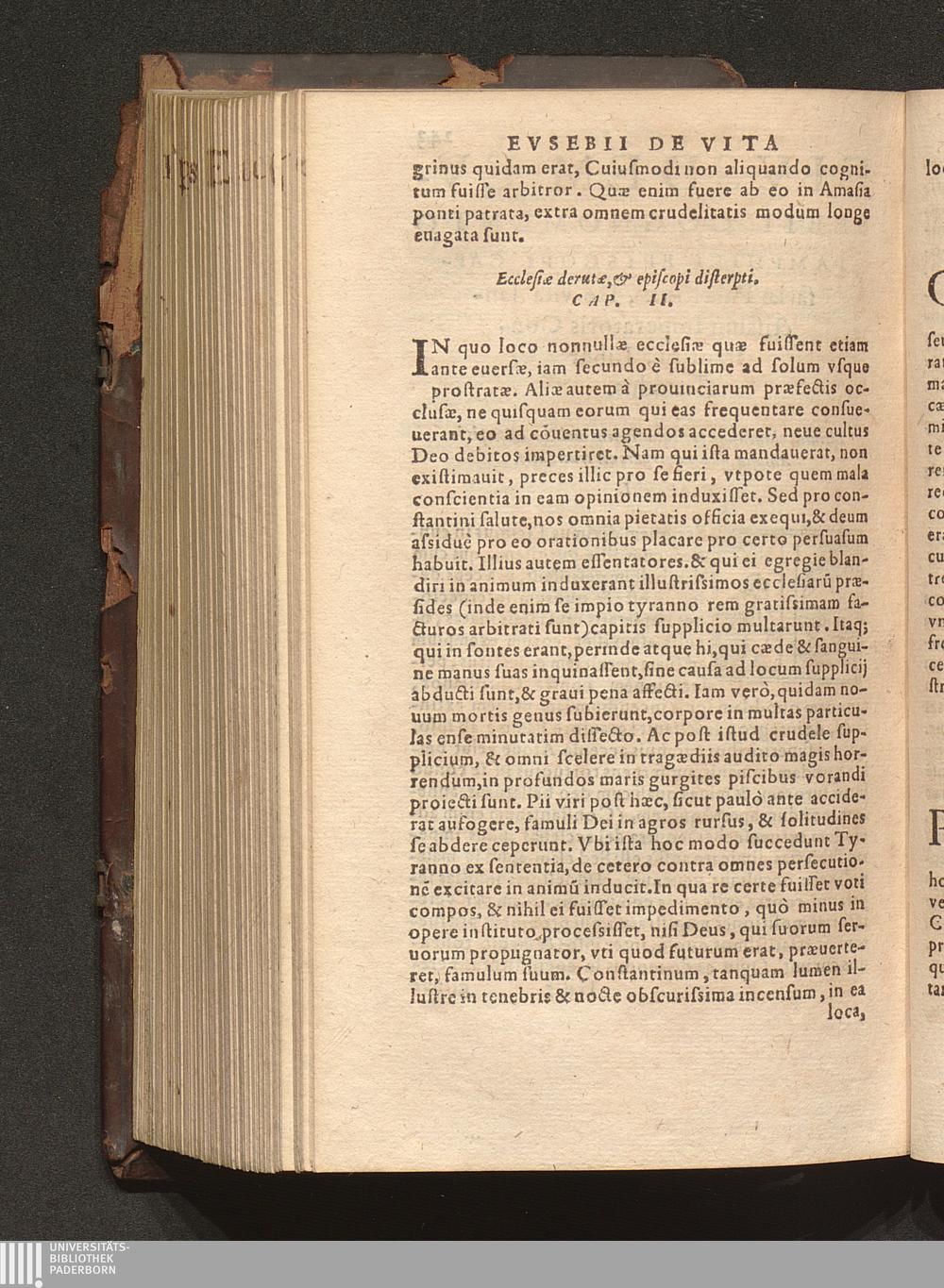 Prima (1569) HISTORIAE EC||CLESIASTICAE PARS || PRIMA, QVA CONTI-||NENTVR || Eusebij cognomento Pamphili Cæsareæ Palæ-||stinæ Episcopi lib. 10.|| Eiusdem de vita Constantini magni lib. 4.|| Oratio Constantini magni ad sanctoru[m] cœtu[m].|| Oratio eiusdem Eusebij in laudem Constanti-||ni magni ad trigesimum illius imperij an-||num, ... ||