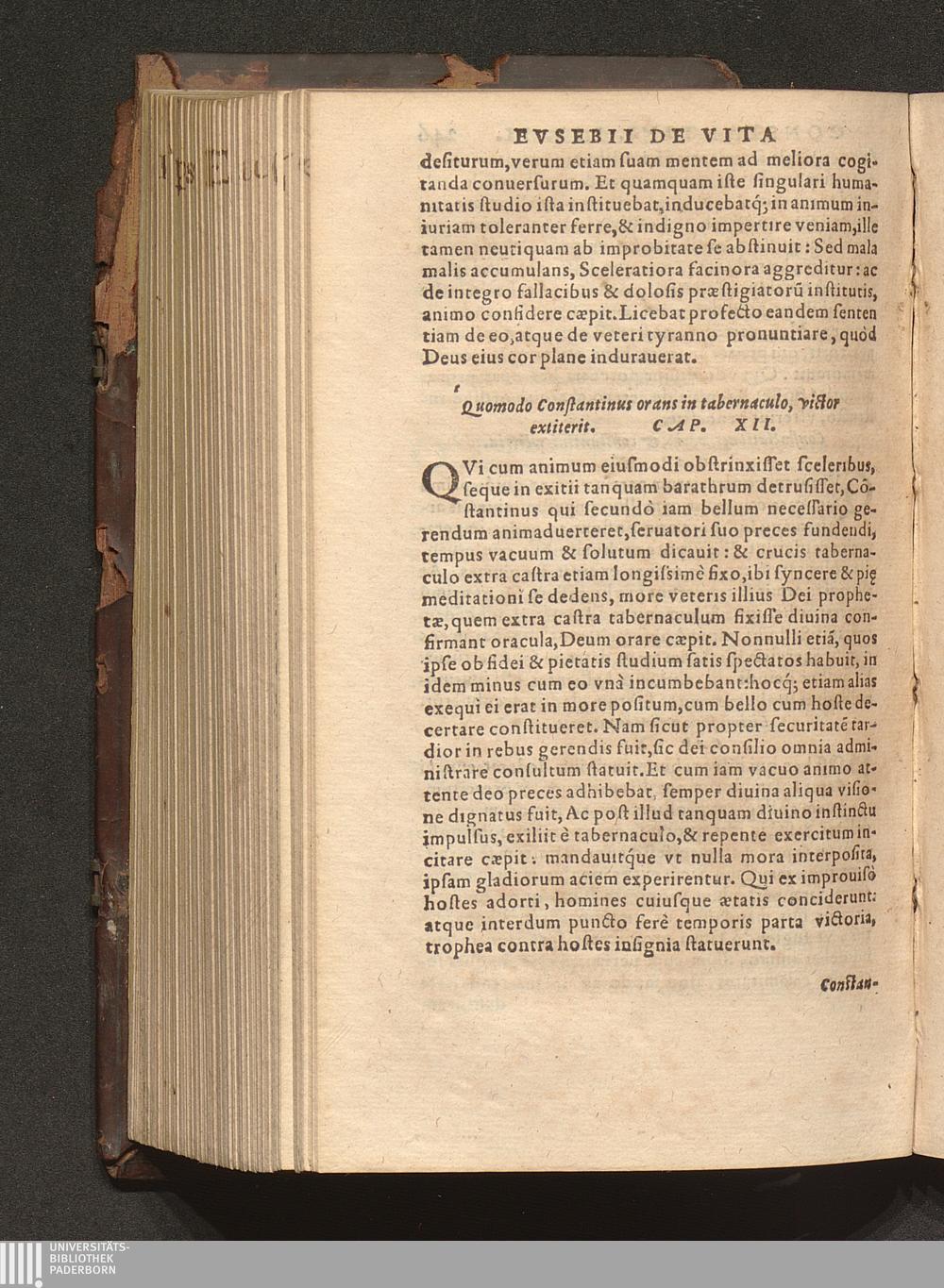 Prima (1569) HISTORIAE EC||CLESIASTICAE PARS || PRIMA, QVA CONTI-||NENTVR || Eusebij cognomento Pamphili Cæsareæ Palæ-||stinæ Episcopi lib. 10.|| Eiusdem de vita Constantini magni lib. 4.|| Oratio Constantini magni ad sanctoru[m] cœtu[m].|| Oratio eiusdem Eusebij in laudem Constanti-||ni magni ad trigesimum illius imperij an-||num, ... ||