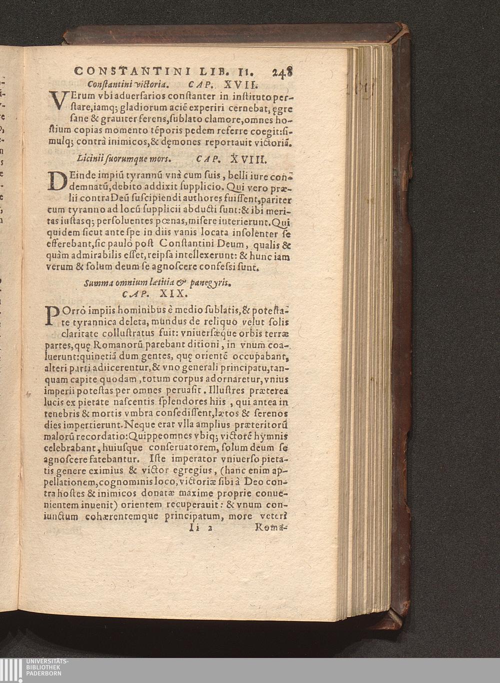 Prima (1569) HISTORIAE EC||CLESIASTICAE PARS || PRIMA, QVA CONTI-||NENTVR || Eusebij cognomento Pamphili Cæsareæ Palæ-||stinæ Episcopi lib. 10.|| Eiusdem de vita Constantini magni lib. 4.|| Oratio Constantini magni ad sanctoru[m] cœtu[m].|| Oratio eiusdem Eusebij in laudem Constanti-||ni magni ad trigesimum illius imperij an-||num, ... ||