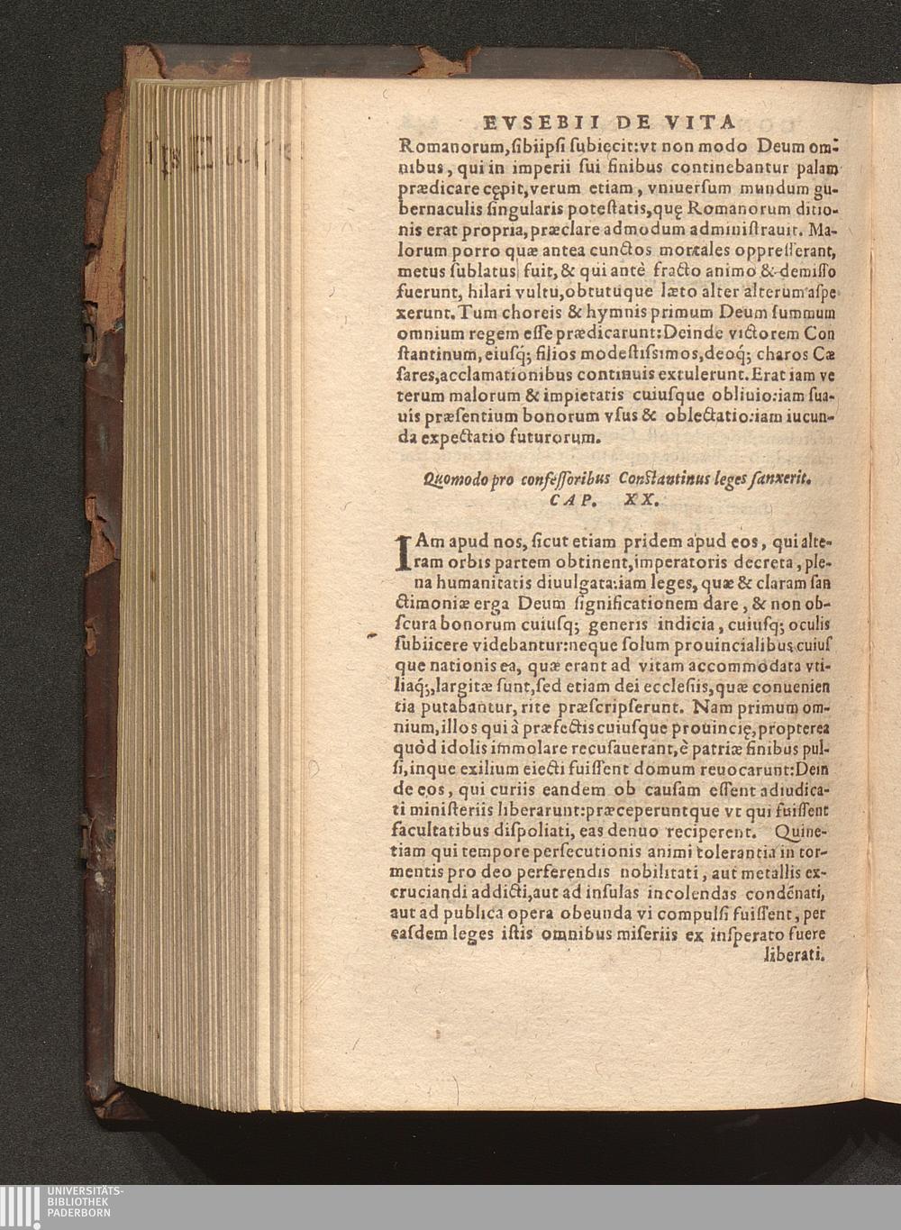 Prima (1569) HISTORIAE EC||CLESIASTICAE PARS || PRIMA, QVA CONTI-||NENTVR || Eusebij cognomento Pamphili Cæsareæ Palæ-||stinæ Episcopi lib. 10.|| Eiusdem de vita Constantini magni lib. 4.|| Oratio Constantini magni ad sanctoru[m] cœtu[m].|| Oratio eiusdem Eusebij in laudem Constanti-||ni magni ad trigesimum illius imperij an-||num, ... ||