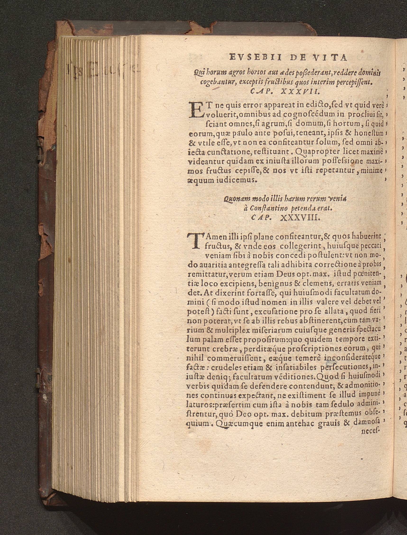 Prima (1569) HISTORIAE EC||CLESIASTICAE PARS || PRIMA, QVA CONTI-||NENTVR || Eusebij cognomento Pamphili Cæsareæ Palæ-||stinæ Episcopi lib. 10.|| Eiusdem de vita Constantini magni lib. 4.|| Oratio Constantini magni ad sanctoru[m] cœtu[m].|| Oratio eiusdem Eusebij in laudem Constanti-||ni magni ad trigesimum illius imperij an-||num, ... ||