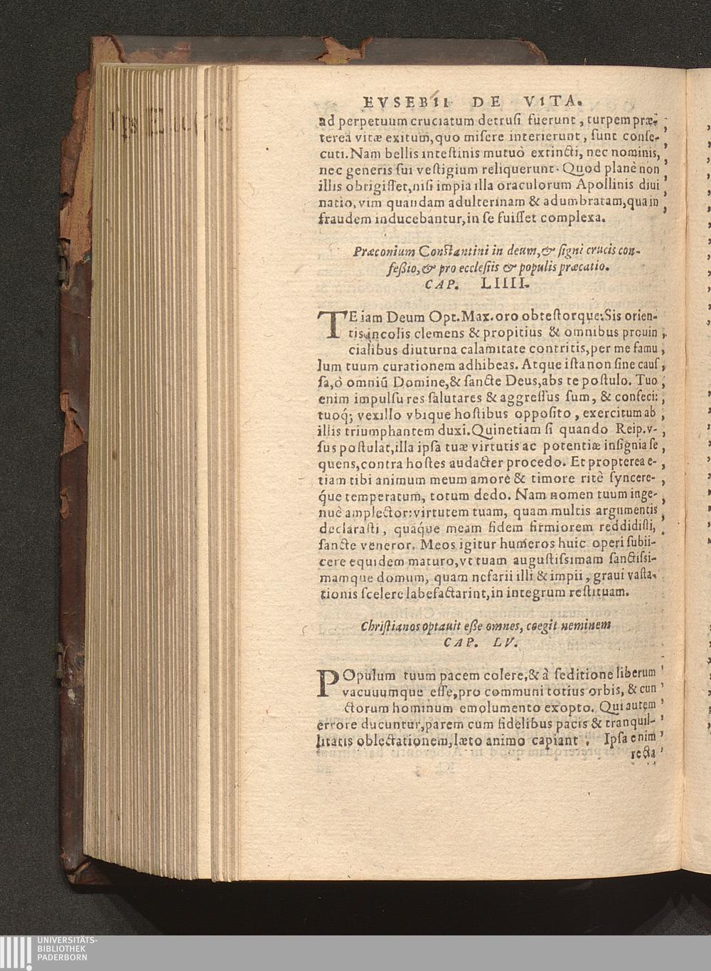 Prima (1569) HISTORIAE EC||CLESIASTICAE PARS || PRIMA, QVA CONTI-||NENTVR || Eusebij cognomento Pamphili Cæsareæ Palæ-||stinæ Episcopi lib. 10.|| Eiusdem de vita Constantini magni lib. 4.|| Oratio Constantini magni ad sanctoru[m] cœtu[m].|| Oratio eiusdem Eusebij in laudem Constanti-||ni magni ad trigesimum illius imperij an-||num, ... ||
