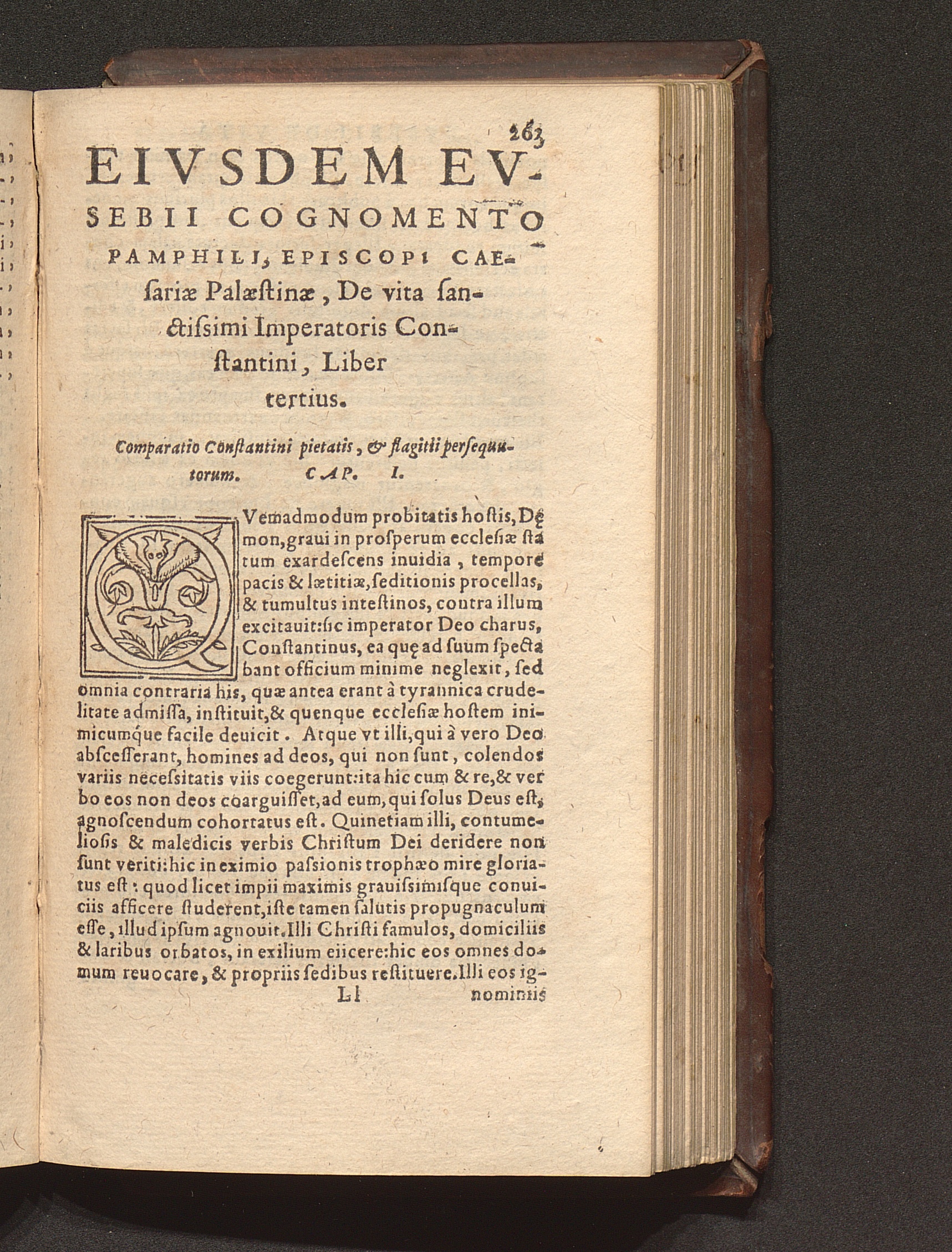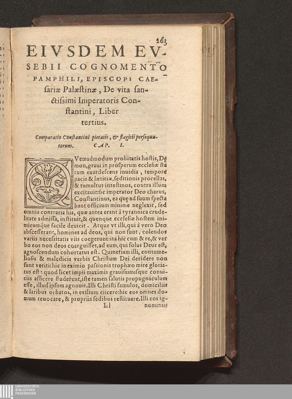 Prima (1569) HISTORIAE EC||CLESIASTICAE PARS || PRIMA, QVA CONTI-||NENTVR || Eusebij cognomento Pamphili Cæsareæ Palæ-||stinæ Episcopi lib. 10.|| Eiusdem de vita Constantini magni lib. 4.|| Oratio Constantini magni ad sanctoru[m] cœtu[m].|| Oratio eiusdem Eusebij in laudem Constanti-||ni magni ad trigesimum illius imperij an-||num, ... ||