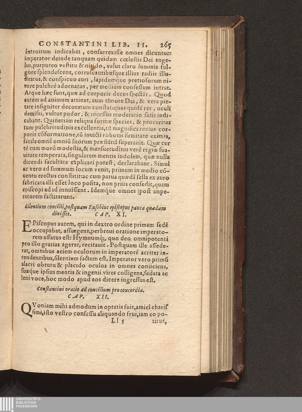Prima (1569) HISTORIAE EC||CLESIASTICAE PARS || PRIMA, QVA CONTI-||NENTVR || Eusebij cognomento Pamphili Cæsareæ Palæ-||stinæ Episcopi lib. 10.|| Eiusdem de vita Constantini magni lib. 4.|| Oratio Constantini magni ad sanctoru[m] cœtu[m].|| Oratio eiusdem Eusebij in laudem Constanti-||ni magni ad trigesimum illius imperij an-||num, ... ||