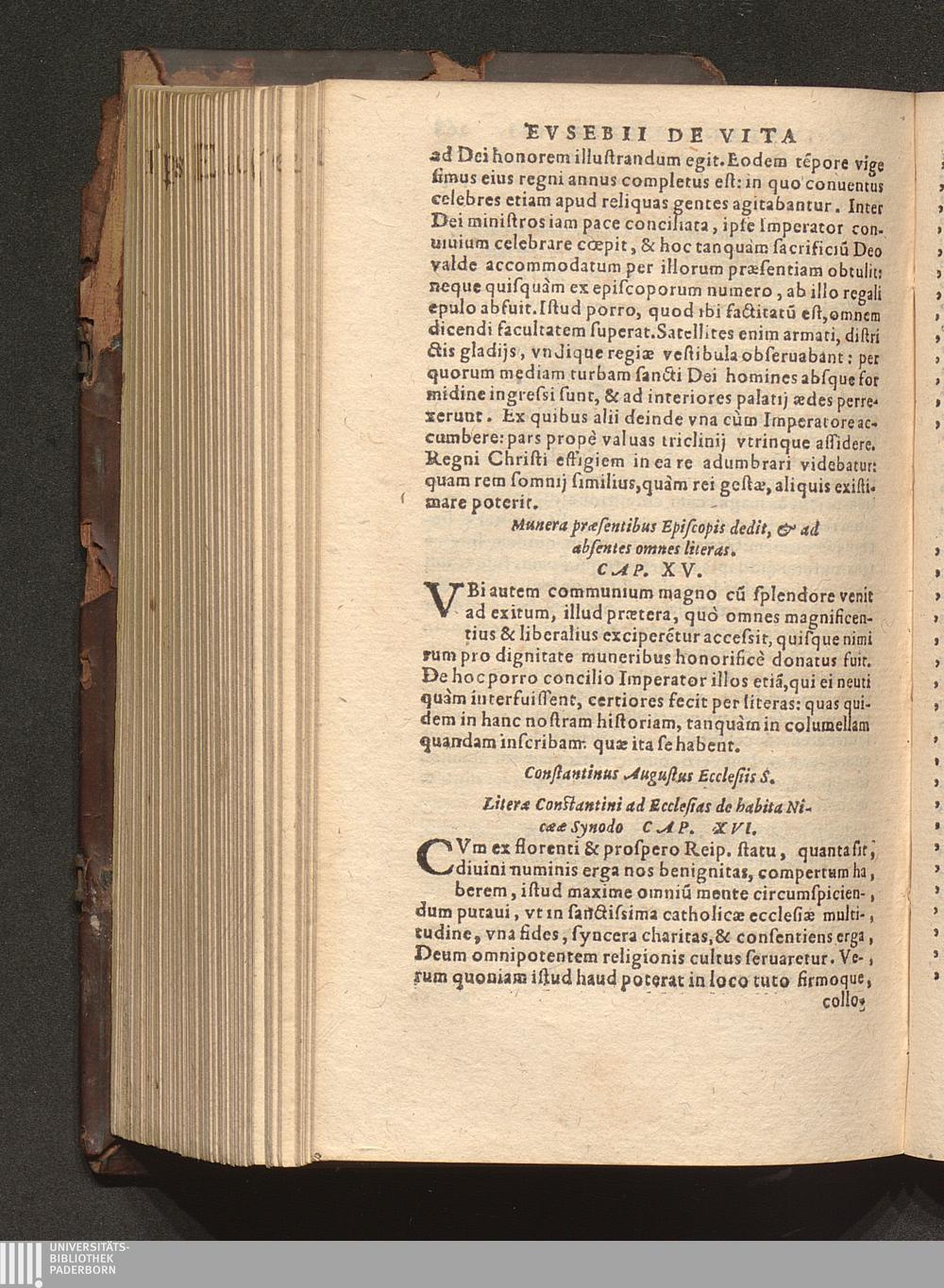 Prima (1569) HISTORIAE EC||CLESIASTICAE PARS || PRIMA, QVA CONTI-||NENTVR || Eusebij cognomento Pamphili Cæsareæ Palæ-||stinæ Episcopi lib. 10.|| Eiusdem de vita Constantini magni lib. 4.|| Oratio Constantini magni ad sanctoru[m] cœtu[m].|| Oratio eiusdem Eusebij in laudem Constanti-||ni magni ad trigesimum illius imperij an-||num, ... ||