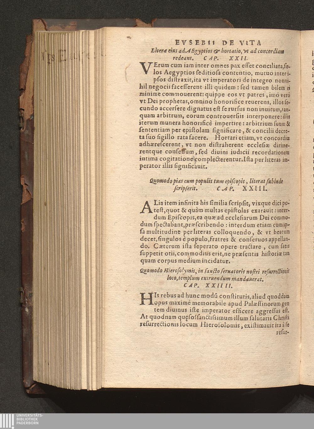 Prima (1569) HISTORIAE EC||CLESIASTICAE PARS || PRIMA, QVA CONTI-||NENTVR || Eusebij cognomento Pamphili Cæsareæ Palæ-||stinæ Episcopi lib. 10.|| Eiusdem de vita Constantini magni lib. 4.|| Oratio Constantini magni ad sanctoru[m] cœtu[m].|| Oratio eiusdem Eusebij in laudem Constanti-||ni magni ad trigesimum illius imperij an-||num, ... ||