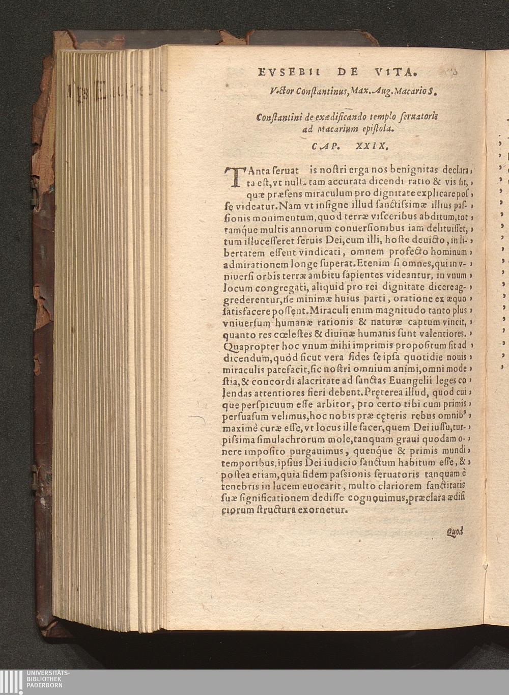 Prima (1569) HISTORIAE EC||CLESIASTICAE PARS || PRIMA, QVA CONTI-||NENTVR || Eusebij cognomento Pamphili Cæsareæ Palæ-||stinæ Episcopi lib. 10.|| Eiusdem de vita Constantini magni lib. 4.|| Oratio Constantini magni ad sanctoru[m] cœtu[m].|| Oratio eiusdem Eusebij in laudem Constanti-||ni magni ad trigesimum illius imperij an-||num, ... ||