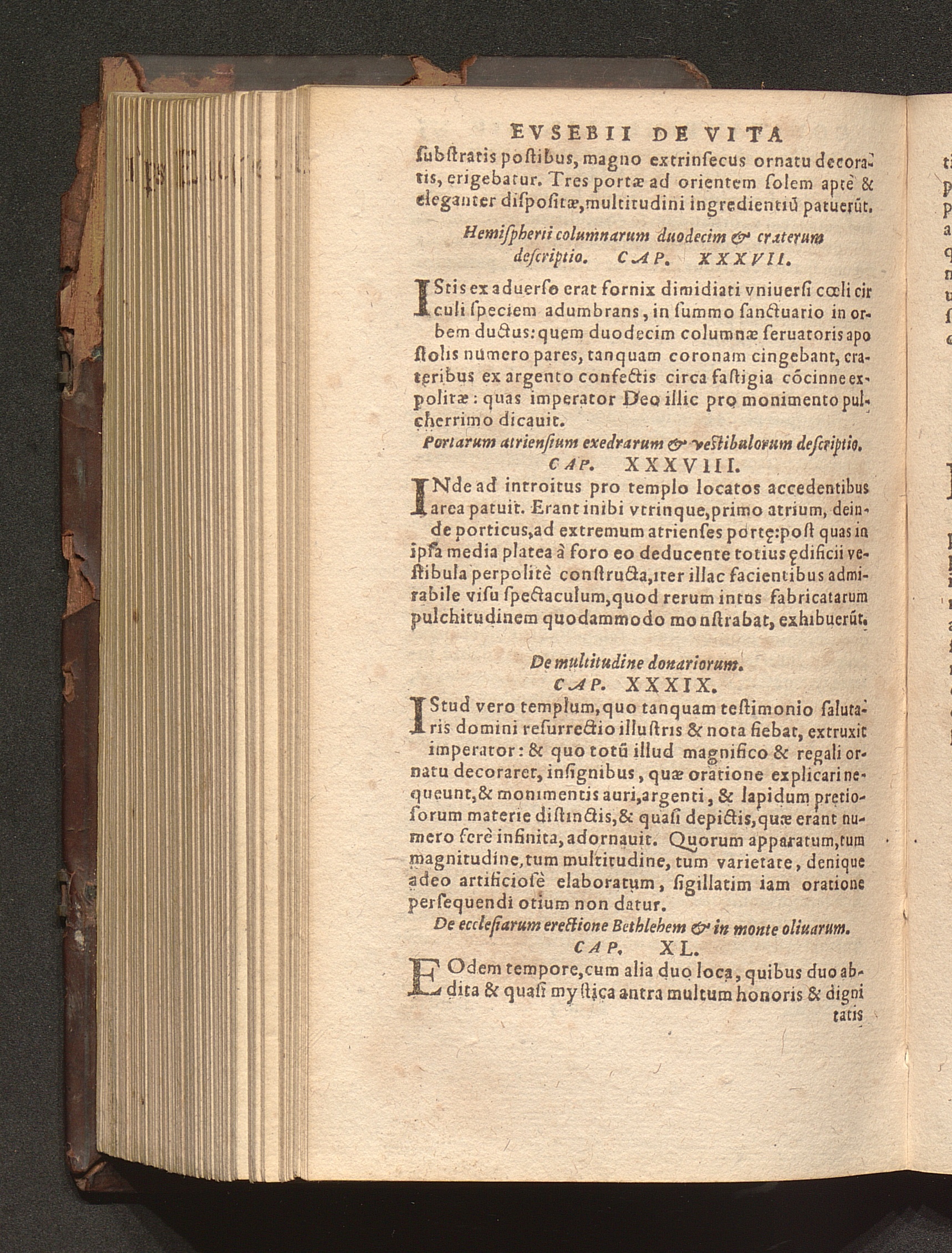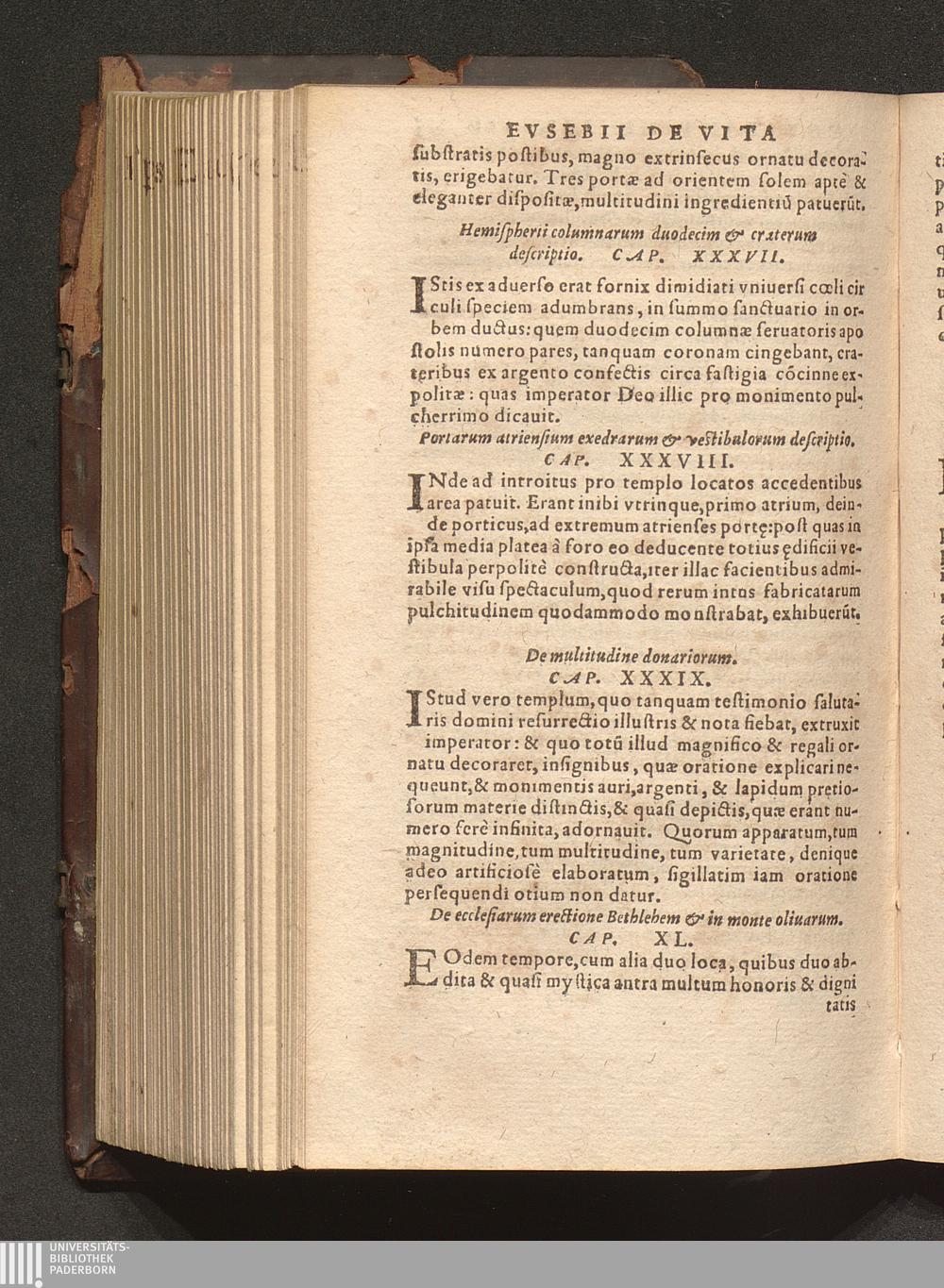 Prima (1569) HISTORIAE EC||CLESIASTICAE PARS || PRIMA, QVA CONTI-||NENTVR || Eusebij cognomento Pamphili Cæsareæ Palæ-||stinæ Episcopi lib. 10.|| Eiusdem de vita Constantini magni lib. 4.|| Oratio Constantini magni ad sanctoru[m] cœtu[m].|| Oratio eiusdem Eusebij in laudem Constanti-||ni magni ad trigesimum illius imperij an-||num, ... ||