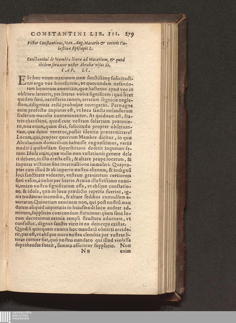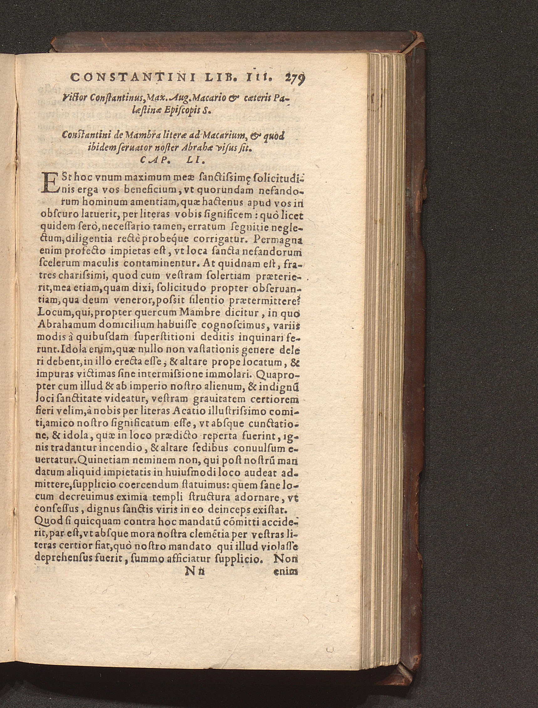 Prima (1569) HISTORIAE EC||CLESIASTICAE PARS || PRIMA, QVA CONTI-||NENTVR || Eusebij cognomento Pamphili Cæsareæ Palæ-||stinæ Episcopi lib. 10.|| Eiusdem de vita Constantini magni lib. 4.|| Oratio Constantini magni ad sanctoru[m] cœtu[m].|| Oratio eiusdem Eusebij in laudem Constanti-||ni magni ad trigesimum illius imperij an-||num, ... ||