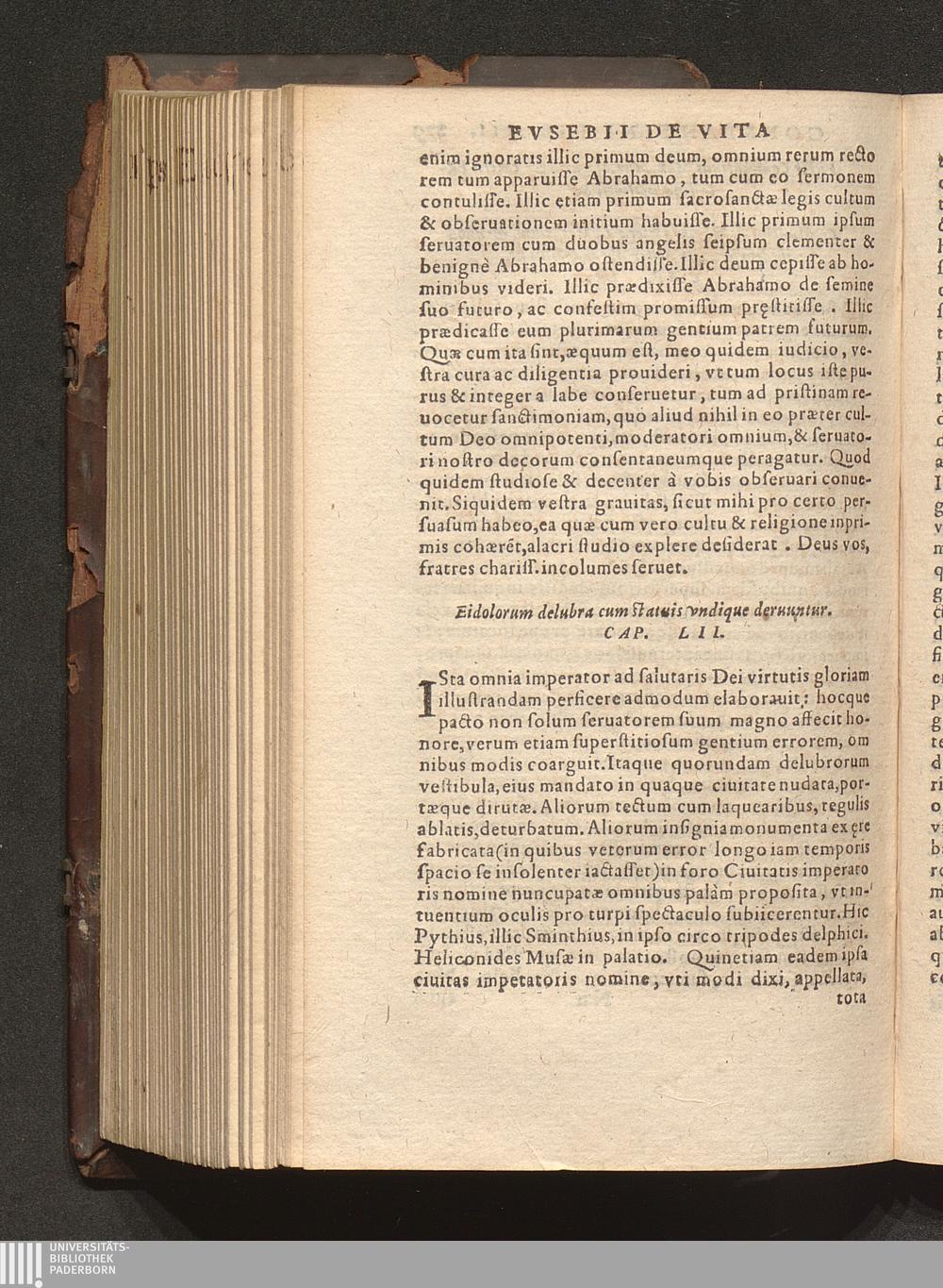 Prima (1569) HISTORIAE EC||CLESIASTICAE PARS || PRIMA, QVA CONTI-||NENTVR || Eusebij cognomento Pamphili Cæsareæ Palæ-||stinæ Episcopi lib. 10.|| Eiusdem de vita Constantini magni lib. 4.|| Oratio Constantini magni ad sanctoru[m] cœtu[m].|| Oratio eiusdem Eusebij in laudem Constanti-||ni magni ad trigesimum illius imperij an-||num, ... ||