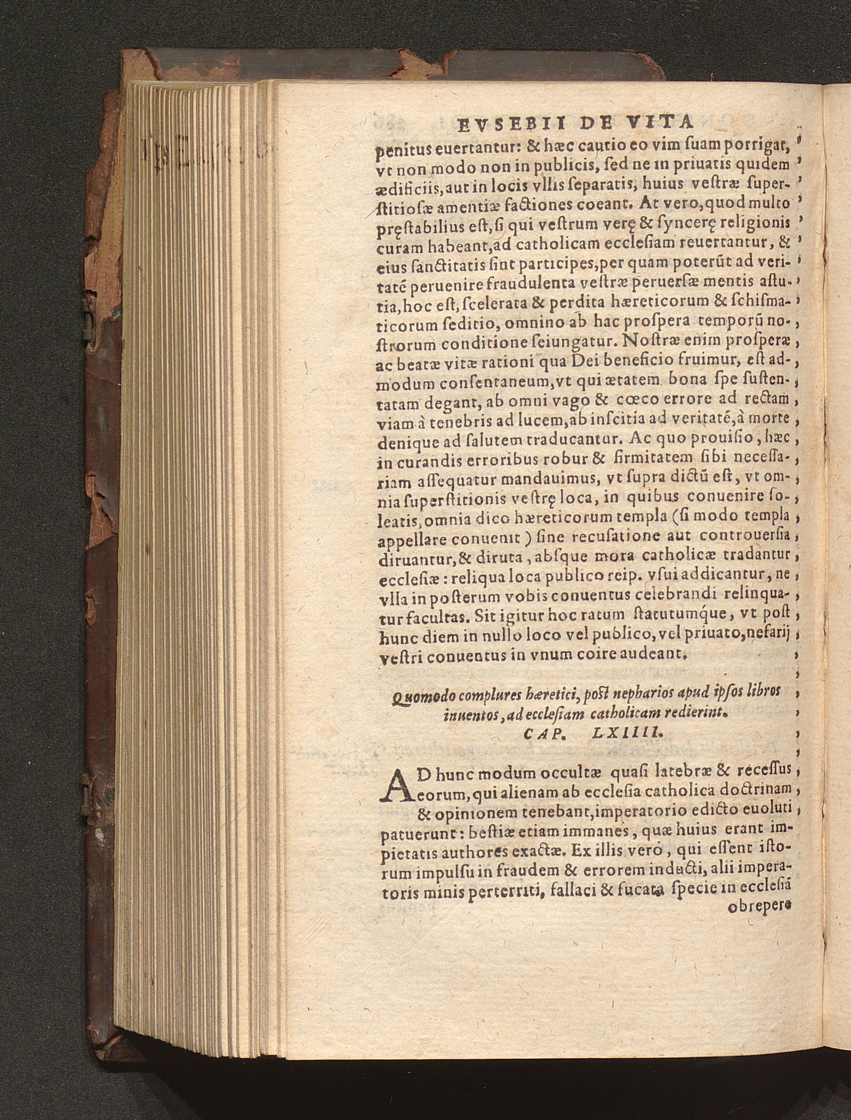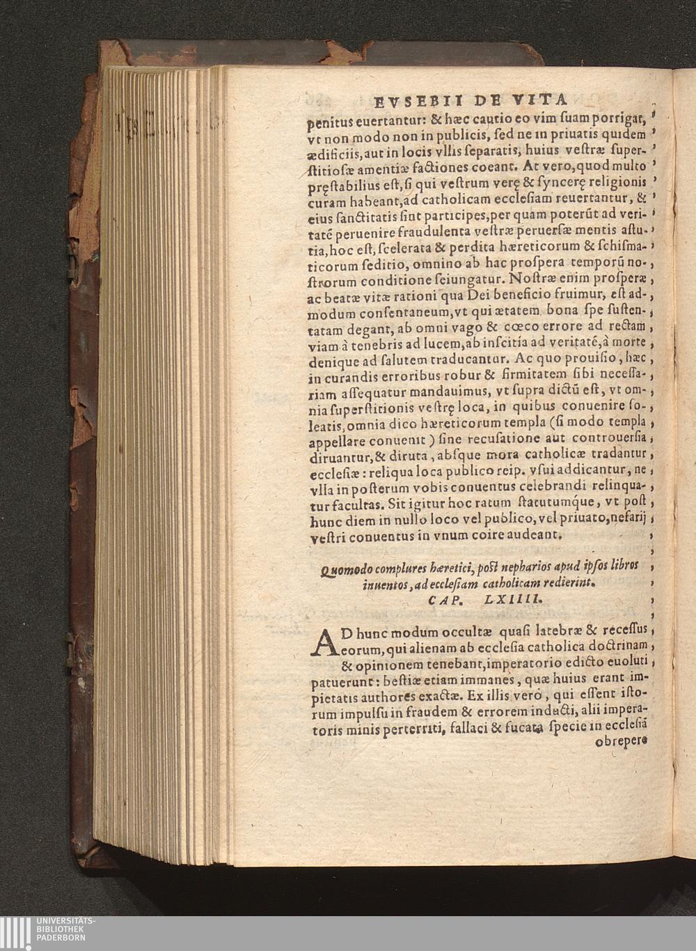 Prima (1569) HISTORIAE EC||CLESIASTICAE PARS || PRIMA, QVA CONTI-||NENTVR || Eusebij cognomento Pamphili Cæsareæ Palæ-||stinæ Episcopi lib. 10.|| Eiusdem de vita Constantini magni lib. 4.|| Oratio Constantini magni ad sanctoru[m] cœtu[m].|| Oratio eiusdem Eusebij in laudem Constanti-||ni magni ad trigesimum illius imperij an-||num, ... ||