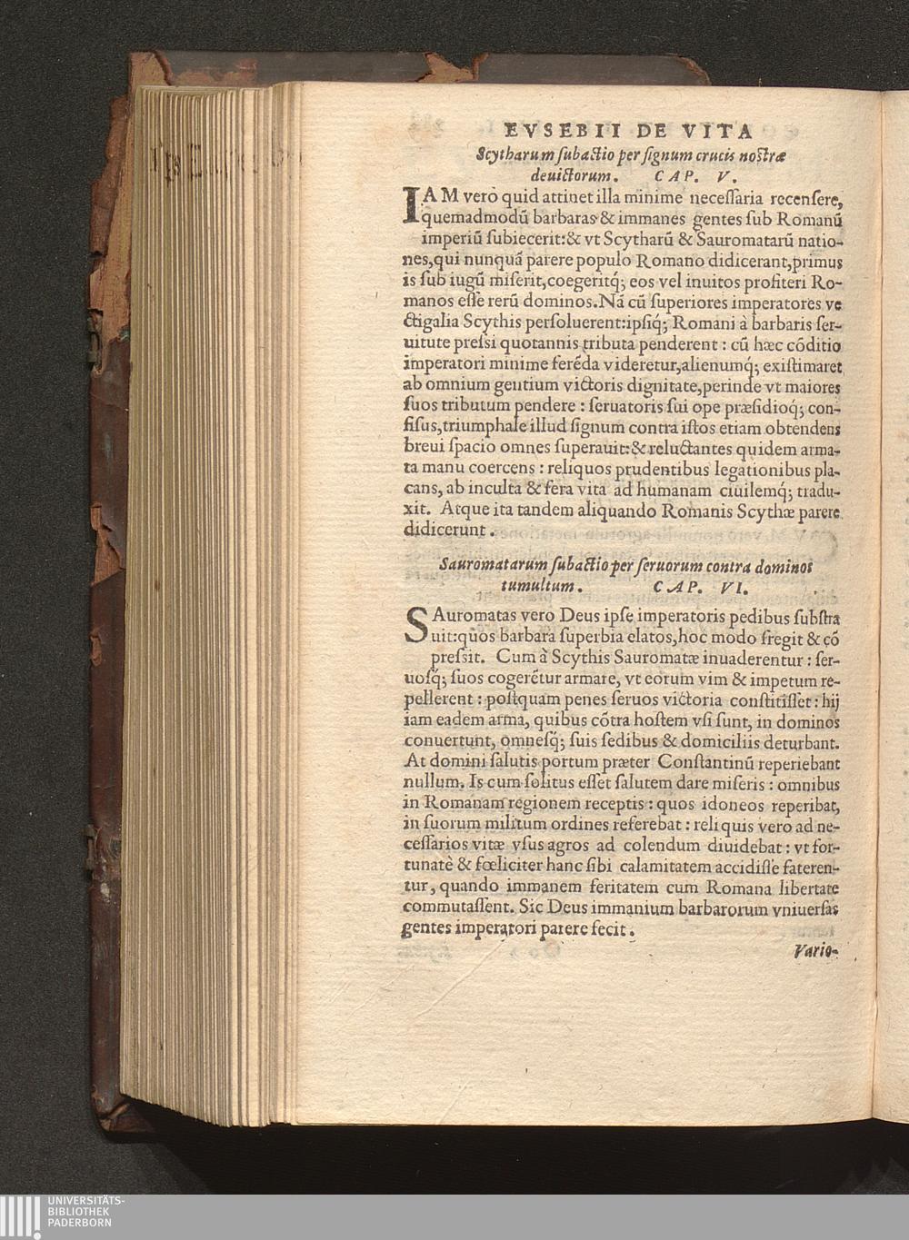 Prima (1569) HISTORIAE EC||CLESIASTICAE PARS || PRIMA, QVA CONTI-||NENTVR || Eusebij cognomento Pamphili Cæsareæ Palæ-||stinæ Episcopi lib. 10.|| Eiusdem de vita Constantini magni lib. 4.|| Oratio Constantini magni ad sanctoru[m] cœtu[m].|| Oratio eiusdem Eusebij in laudem Constanti-||ni magni ad trigesimum illius imperij an-||num, ... ||