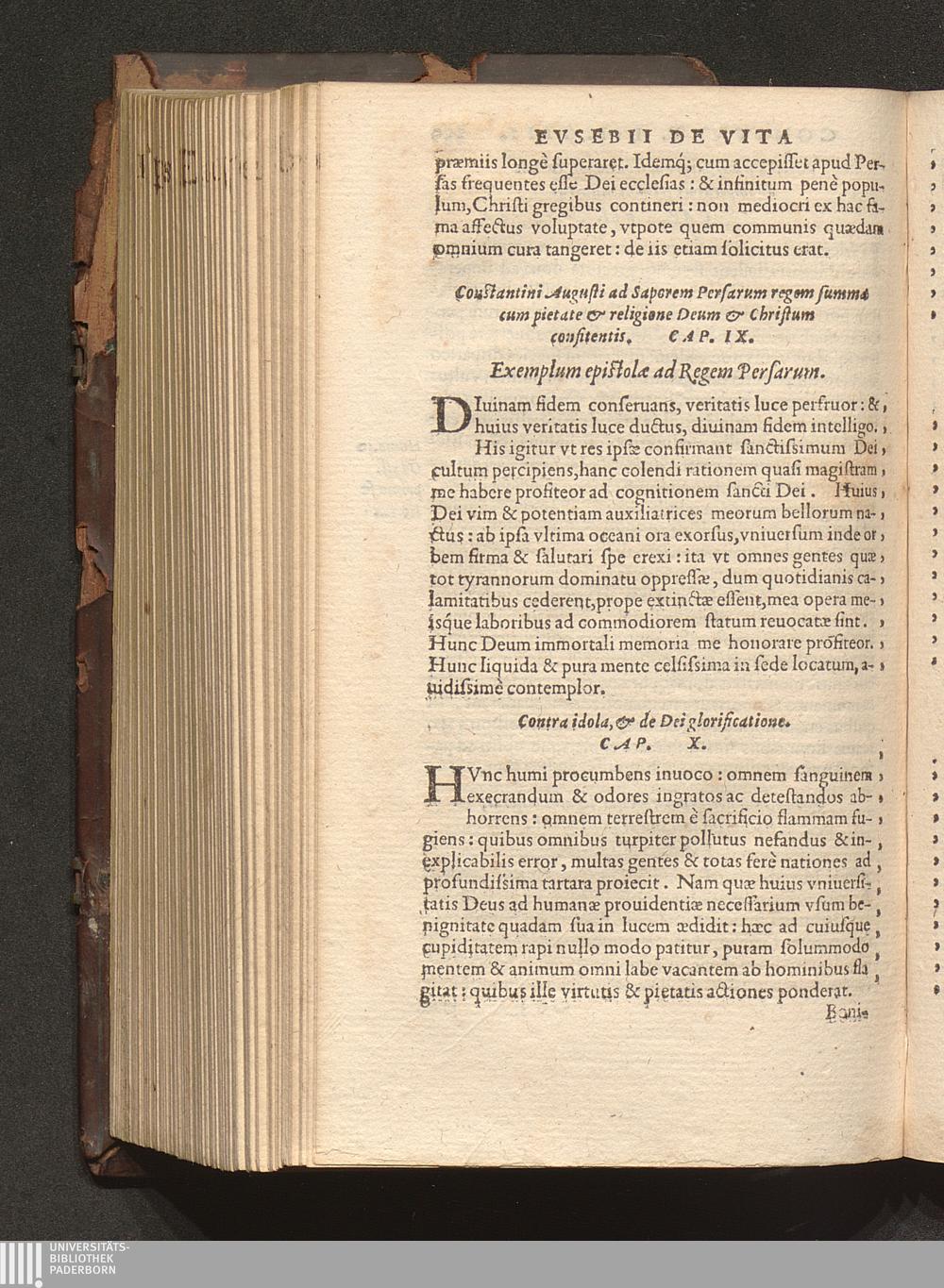 Prima (1569) HISTORIAE EC||CLESIASTICAE PARS || PRIMA, QVA CONTI-||NENTVR || Eusebij cognomento Pamphili Cæsareæ Palæ-||stinæ Episcopi lib. 10.|| Eiusdem de vita Constantini magni lib. 4.|| Oratio Constantini magni ad sanctoru[m] cœtu[m].|| Oratio eiusdem Eusebij in laudem Constanti-||ni magni ad trigesimum illius imperij an-||num, ... ||