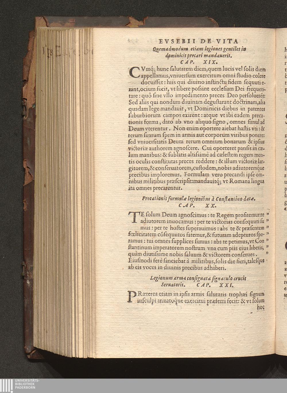 Prima (1569) HISTORIAE EC||CLESIASTICAE PARS || PRIMA, QVA CONTI-||NENTVR || Eusebij cognomento Pamphili Cæsareæ Palæ-||stinæ Episcopi lib. 10.|| Eiusdem de vita Constantini magni lib. 4.|| Oratio Constantini magni ad sanctoru[m] cœtu[m].|| Oratio eiusdem Eusebij in laudem Constanti-||ni magni ad trigesimum illius imperij an-||num, ... ||