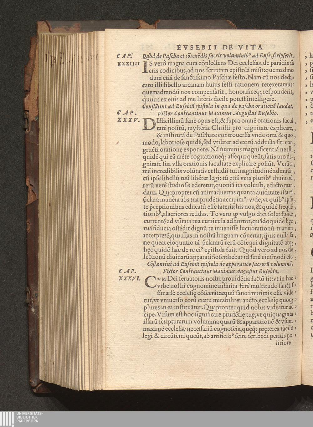 Prima (1569) HISTORIAE EC||CLESIASTICAE PARS || PRIMA, QVA CONTI-||NENTVR || Eusebij cognomento Pamphili Cæsareæ Palæ-||stinæ Episcopi lib. 10.|| Eiusdem de vita Constantini magni lib. 4.|| Oratio Constantini magni ad sanctoru[m] cœtu[m].|| Oratio eiusdem Eusebij in laudem Constanti-||ni magni ad trigesimum illius imperij an-||num, ... ||