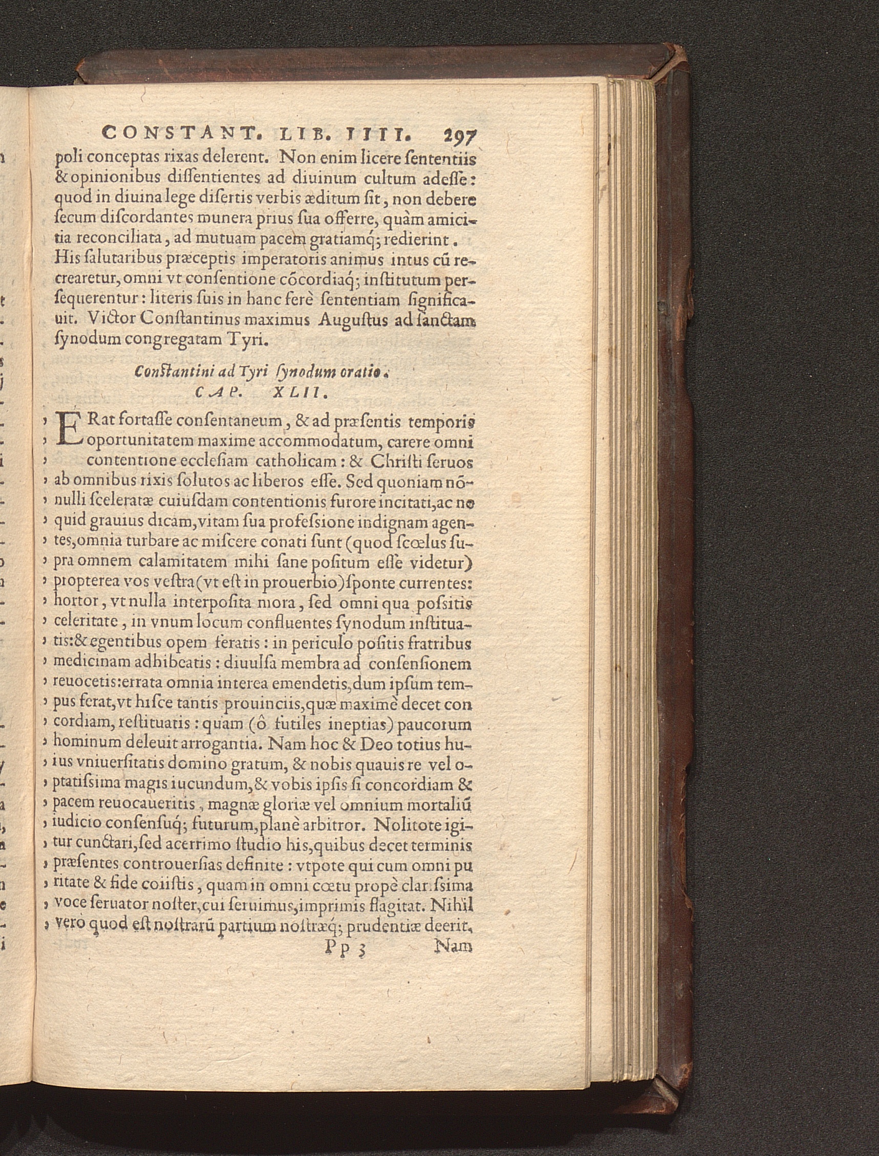 Prima (1569) HISTORIAE EC||CLESIASTICAE PARS || PRIMA, QVA CONTI-||NENTVR || Eusebij cognomento Pamphili Cæsareæ Palæ-||stinæ Episcopi lib. 10.|| Eiusdem de vita Constantini magni lib. 4.|| Oratio Constantini magni ad sanctoru[m] cœtu[m].|| Oratio eiusdem Eusebij in laudem Constanti-||ni magni ad trigesimum illius imperij an-||num, ... ||